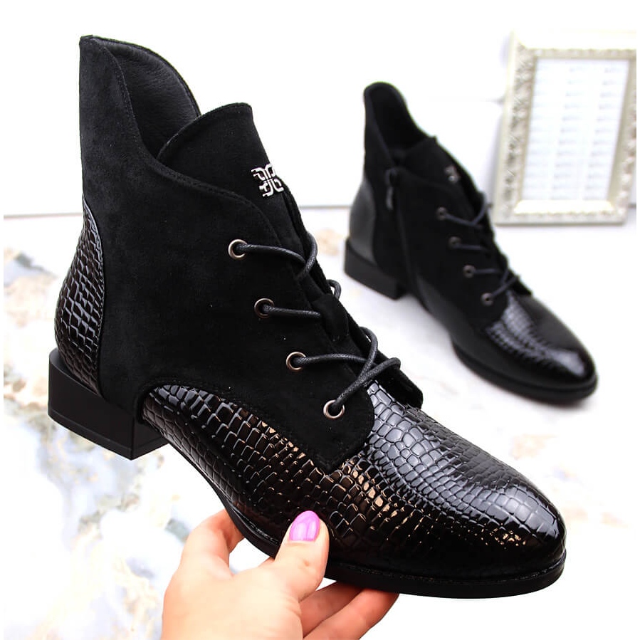 Détails: Bottines noires isolées à talons plats pour femme Vinceza 16439 le noir