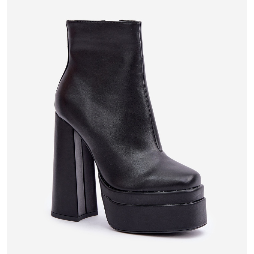 Élégant, confortable et polyvalent - ces bottines avec une hauteur des 13,5 cm supérieurs et une plate-forme de 5,5 cm d'épaisseur est une proposition qui s'adaptera certainement aux dernières tendances. Choisissez des bottes noires sur une plate-forme massive et ajoutez une pincée de luxe à votre stylisation!