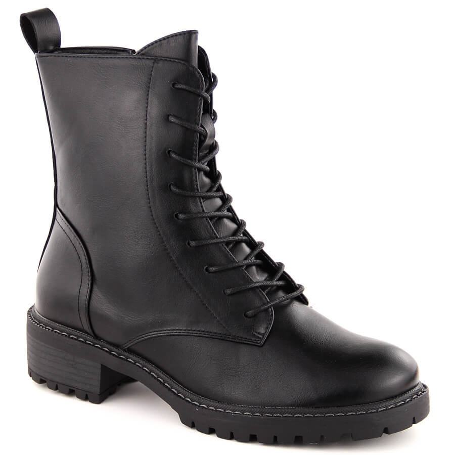Ces bottes de mode ont un talon plat de 4 cm de haut, ce qui en fait un choix confortable au quotidien. La caste de fermeture éclair et le laçage supplémentaire vous permettent de correspondre parfaitement au pied, ce qui augmente leur fonctionnalité. La finition noire signifie qu'ils s'adaptent à presque toutes les stylisations décontractées à élégantes, et leur coupe universelle en fait un complément parfait à la garde-robe pour l'automne et l'hiver.