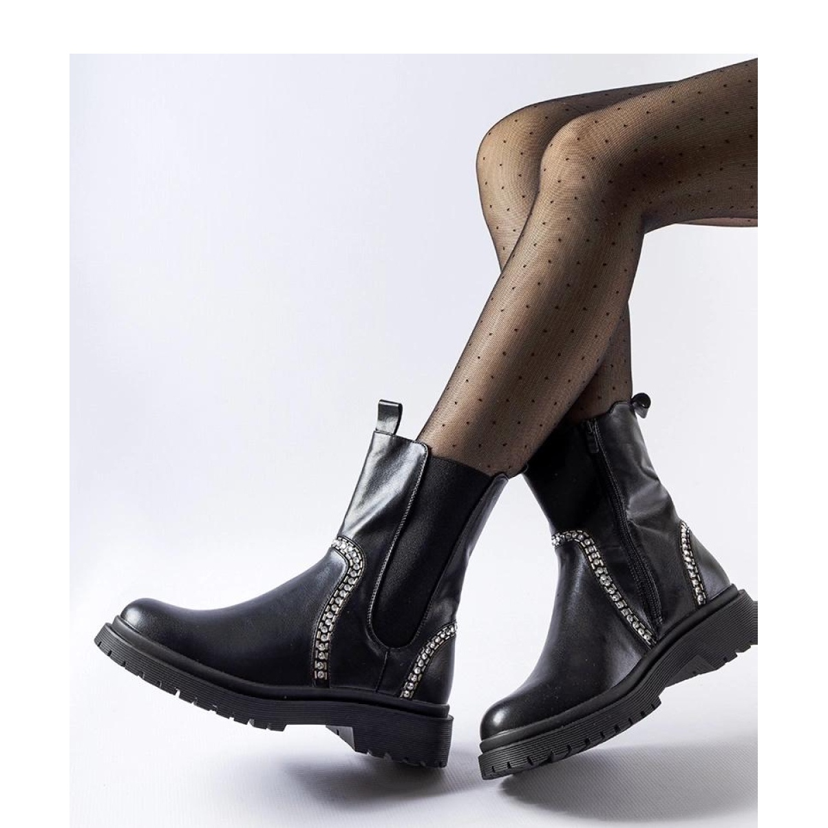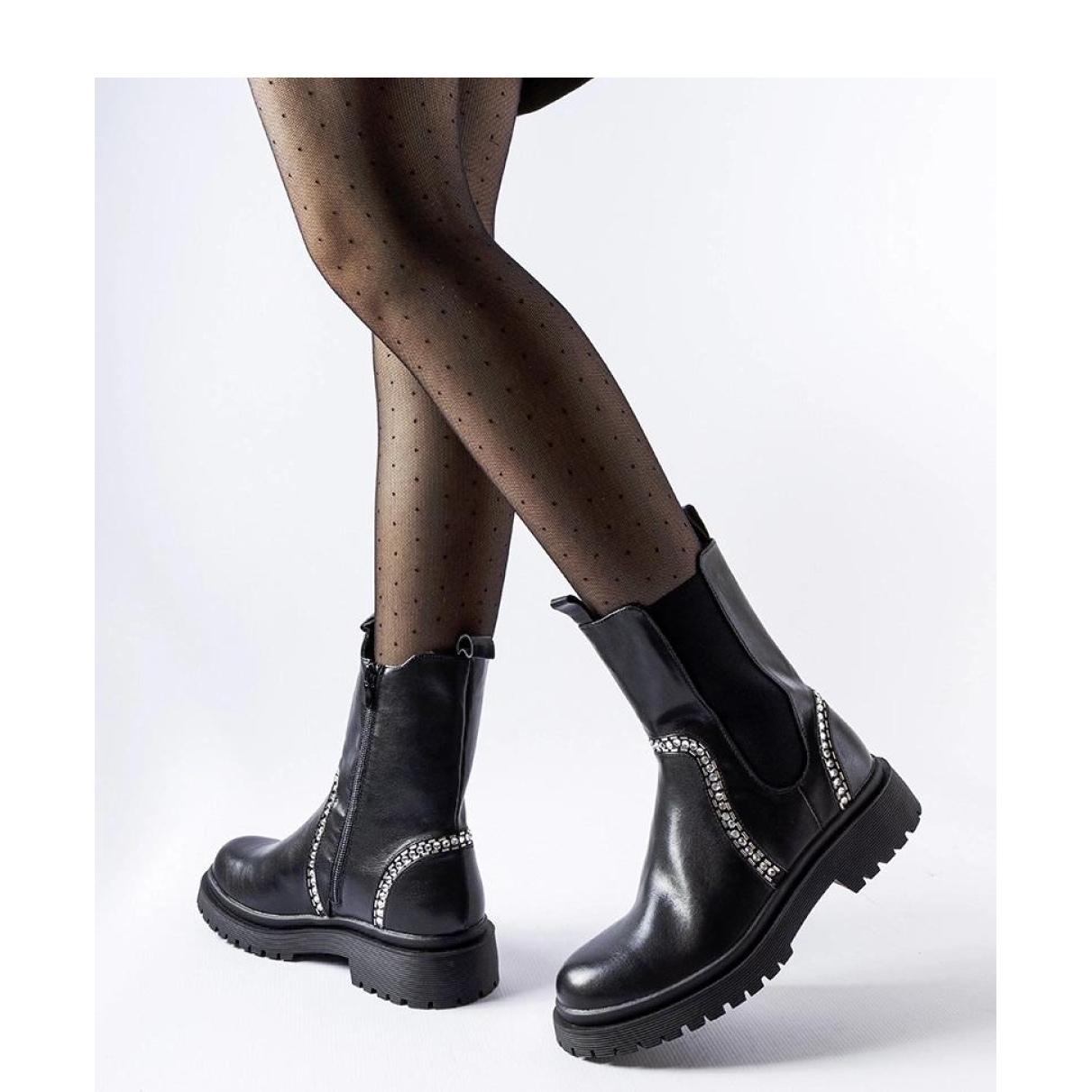 Solea Bottines noires ornées de zircons Anastasio - Solea le noir
