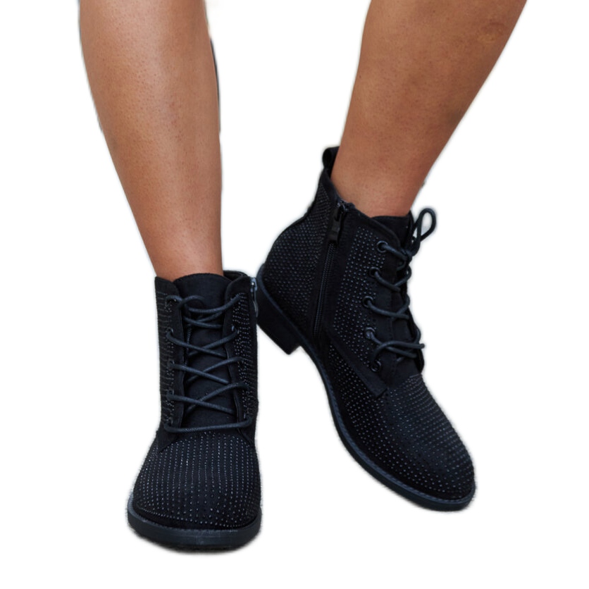 Bottes noires pour femmes Melisurgo décorées de zircons-model CN-029