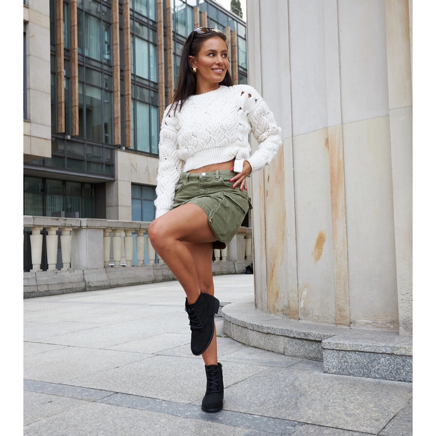 Des bottes élégantes et confortables qui ajouteront une splendeur à chaque stylisation d'hiver. Le nez rond leur donne une subtilité, et la haute supérieure atteignant la cheville (15 cm) offre une protection et un confort pendant les jours plus frais. Les strass décoratives attirent l'attention, mettant l'accent sur la nature unique des chaussures - idéal pour les ensembles décontractés et pour les sorties du soir.