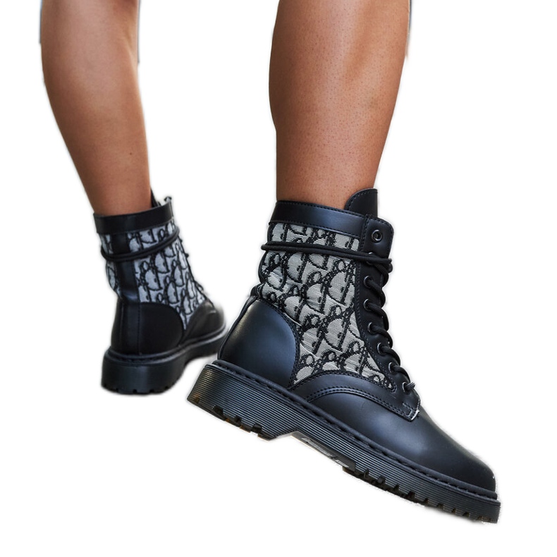 Des bottes de randonnée noires élégantes et modernes décorées d'un monogramme subtil est une proposition idéale pour une femme qui apprécie l'apparence et le confort à la mode. Fabriqué en cuir écologique de haute qualité, sur une semelle en caoutchouc avec une plate-forme légère, assurez la stabilité et le confort tout au long de la journée.