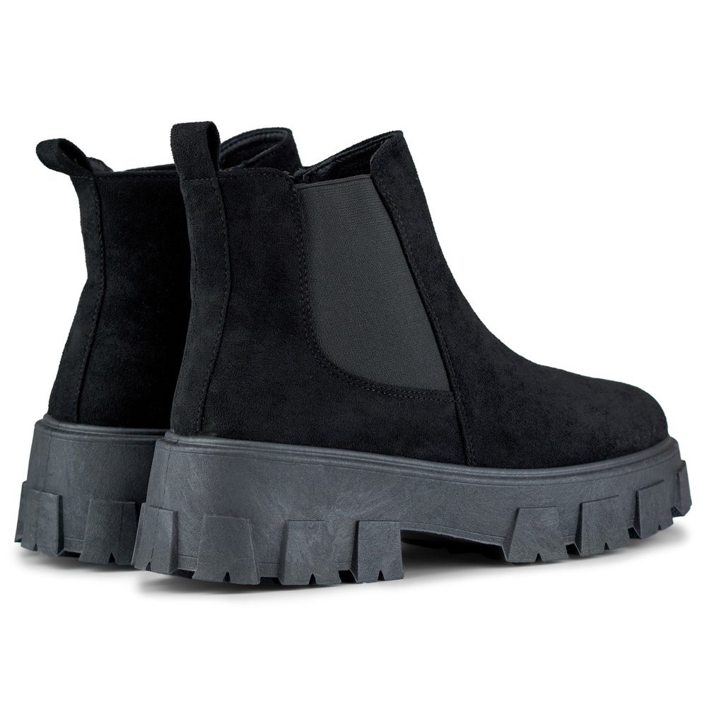 Les bottines noires pour femmes à semelle épaisse sont le choix parfait pour les journées plus froides. Fabriqués en daim écologique, ils sont élégants et stylés, ajoutant du caractère à n'importe quel style. Leur bout rond classique et leur tige haute arrivant au-dessus de la cheville assurent non seulement un look tendance, mais aussi un confort de port.