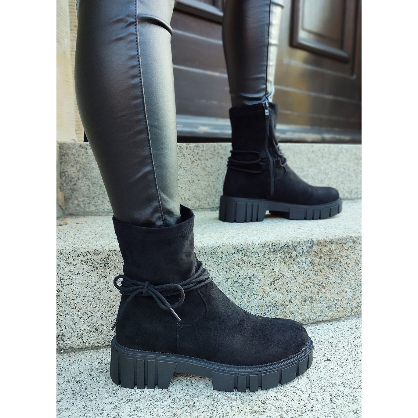 Bottes de femmes noires avec une tige élastique - un classique avec un soupçon de style urbain. Fabriqué en cuir écologique de haute qualité en version en daim, ils combinent un look élégant avec le confort quotidien. La coupe minimaliste et lisse dans une couleur noire universelle fonctionnera dans de nombreux styles - du décontracté à plus élégant.