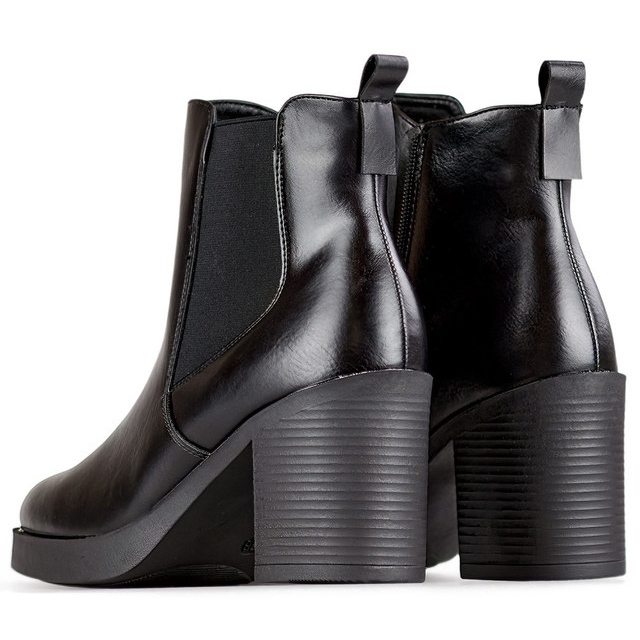 Détails: Bottines noires pour femmes, bottines noires classiques en cuir écologique, chaussures d'hiver isolées le noir