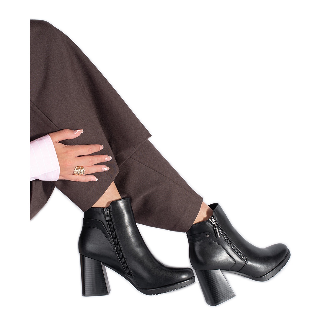 La fixation de fermeture éclair le rend plus facile à mettre et à décoller, et une semelle en plastique lisse garantit l'adhérence et le confort d'utilisation. Ces bottes noires sont un incontournable dans la garde-robe de chaque femme, combinant le design à la mode avec des solutions pratiques.