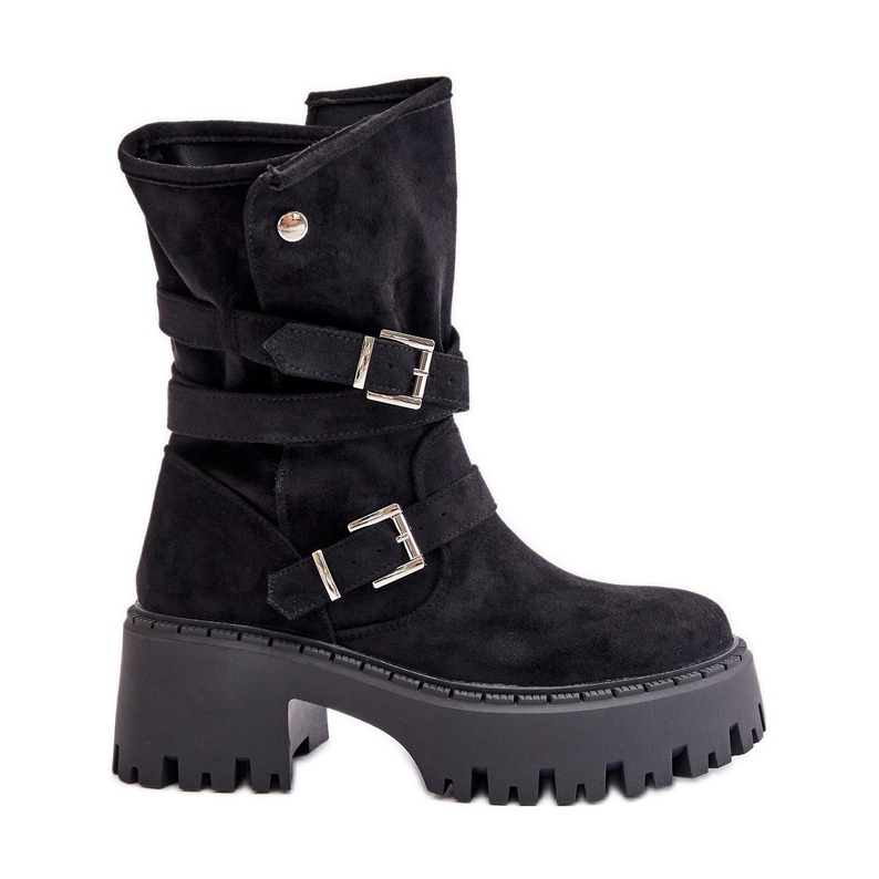 - Modèle: Bottines à talon massif avec boucles et ceinture