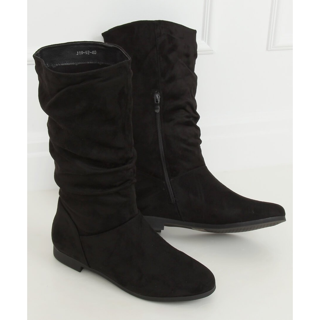 Nous vous présentons les bottes pour femmes en daim noir J19-92 Black, qui s'adaptent parfaitement au style classique et à la mode. Ces chaussures extrêmement élégantes se distinguent par un bout arrondi et une tige à volants, ce qui les rend extrêmement impressionnantes.