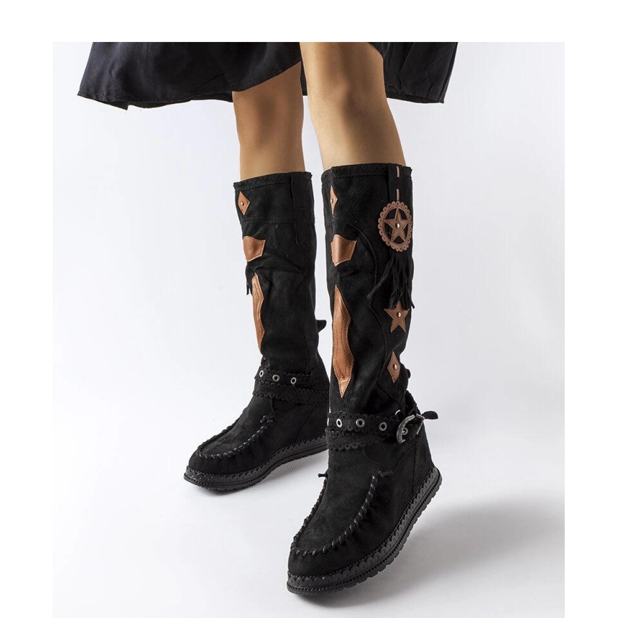 Les bottes noires de style bohème sont un choix parfait pour les femmes qui apprécient l'élégance et le confort. Ces chaussures sont fabriquées en cuir écologique de haute qualité, ce qui garantit durabilité et confort de port. Leur design moderne avec une cale les rend non seulement élégants, mais aussi très confortables. Ils sont parfaits pour les journées plus froides, ajoutant un caractère unique à n'importe quel style. Ces bottes à enfiler de couleur noire classique sont extrêmement universelles et s'agencent facilement à diverses tenues. En achetant ces chaussures, vous investissez dans une élégance intemporelle et un confort pour de nombreuses saisons.