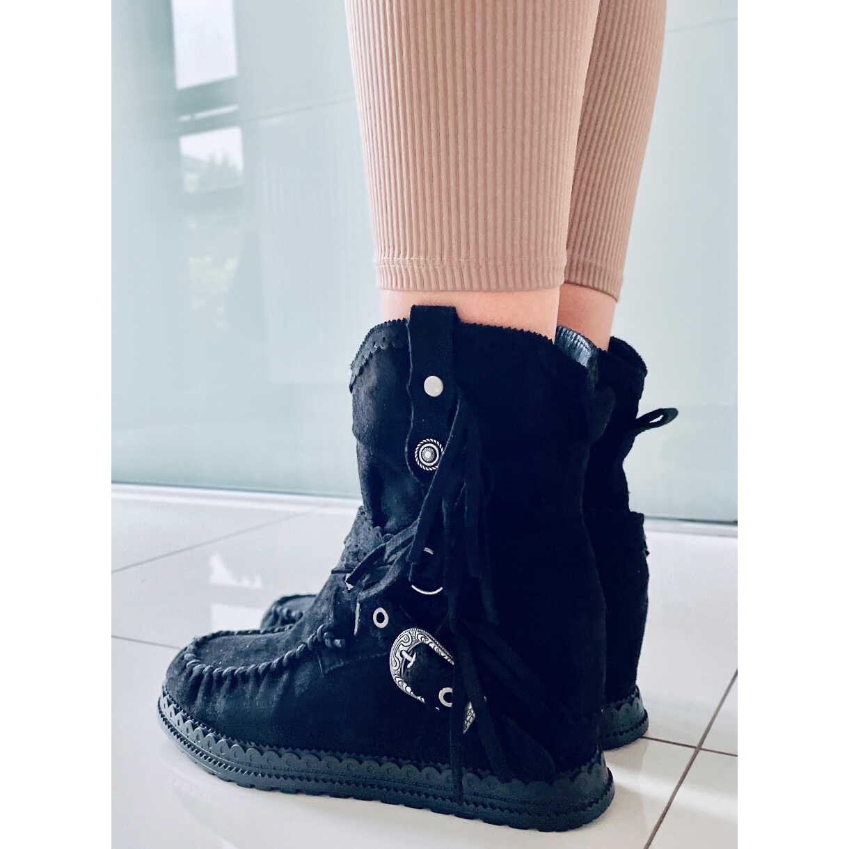 Nous vous présentons les bottes noires de style bohème ST-17P Black, qui sont le choix parfait pour la saison à venir ! Fabriquées en daim écologique, ces bottines en daim pour femme avec un coin caché de 7 cm de haut allient design tendance et fonctionnalité. Décorés de franges et de coutures élégantes, ils attireront certainement l'attention et ajouteront du caractère à n'importe quel style.