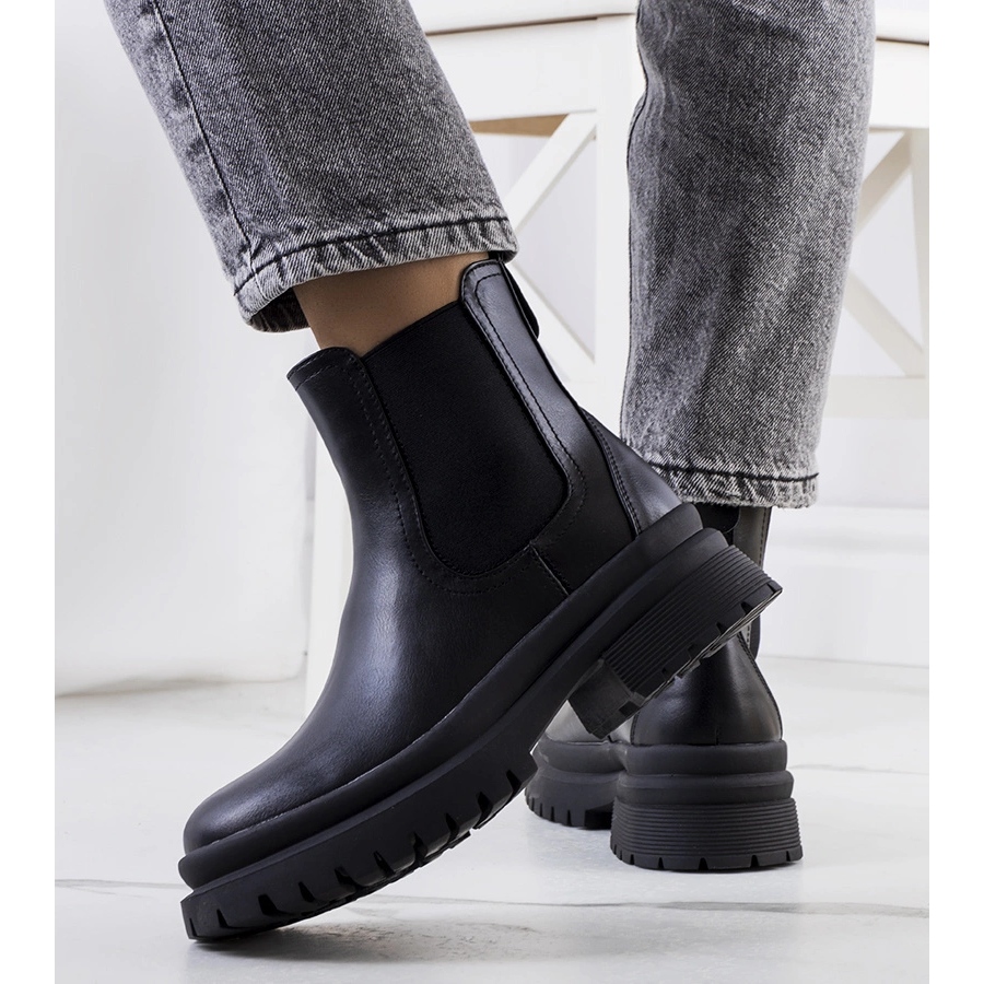 Les bottes mesurent 18,5 cm de hauteur au niveau de la cheville et 4 cm de plateforme, ce qui souligne encore leur caractère élégant. La fermeture éclair est une solution pratique qui facilite l'enfilage et le retrait des chaussures. La finition noire et minimaliste les rend parfaits pour différents styles, du quotidien au plus élégant.