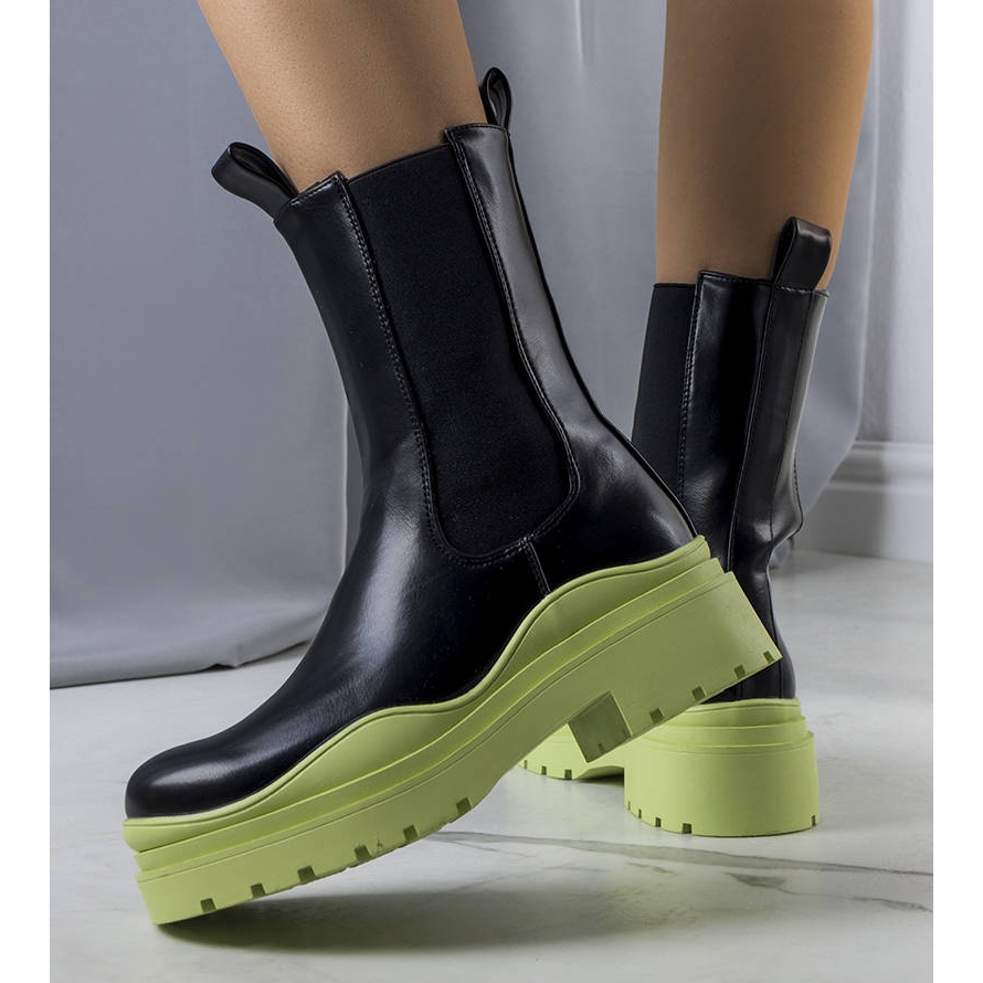 Détails: BM Bottines noires sur semelle Jadiel verte le noir