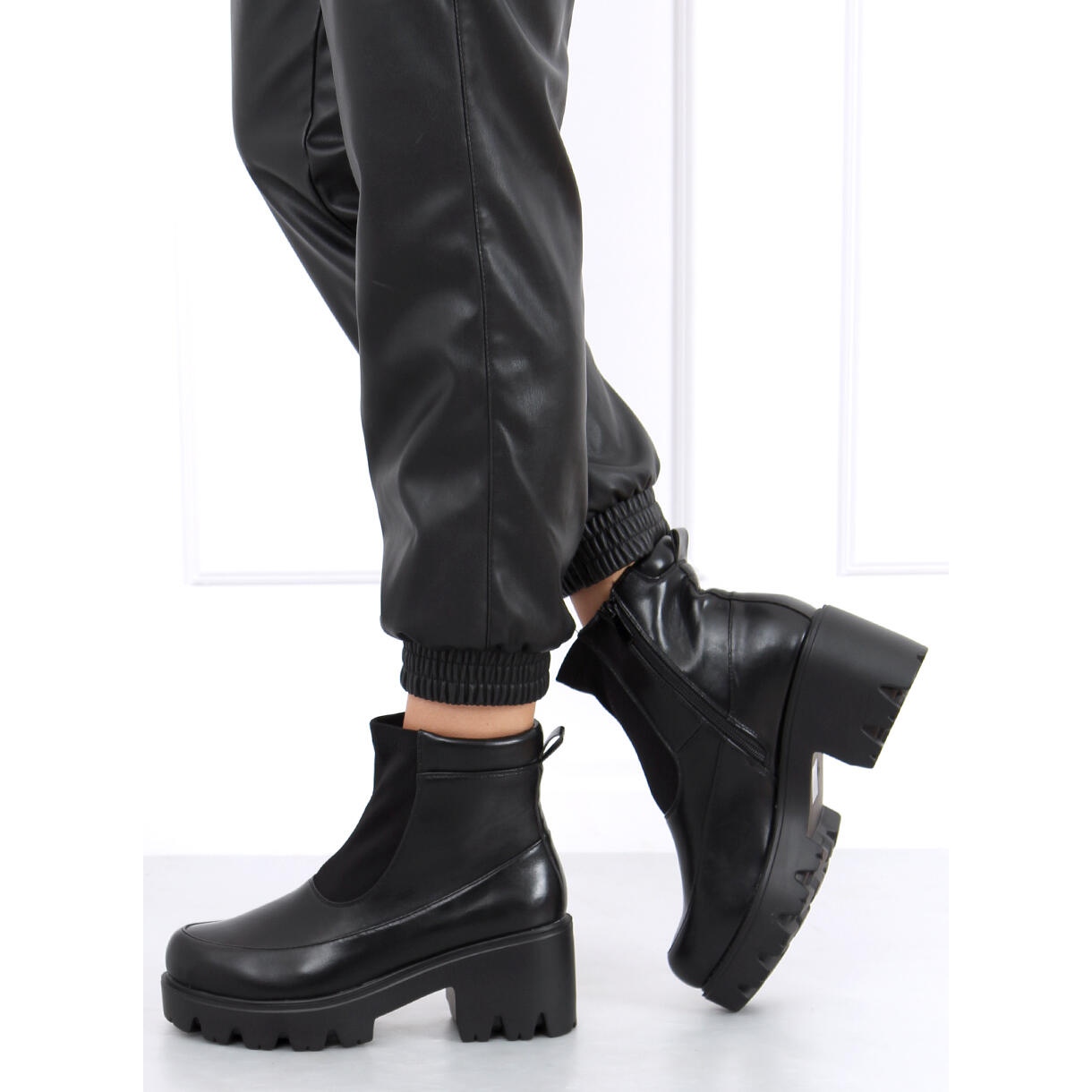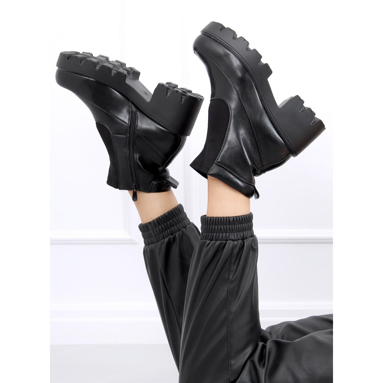 **Bottines noires à semelles épaisses CH19208 Noir - Les incontournables de l'automne !**