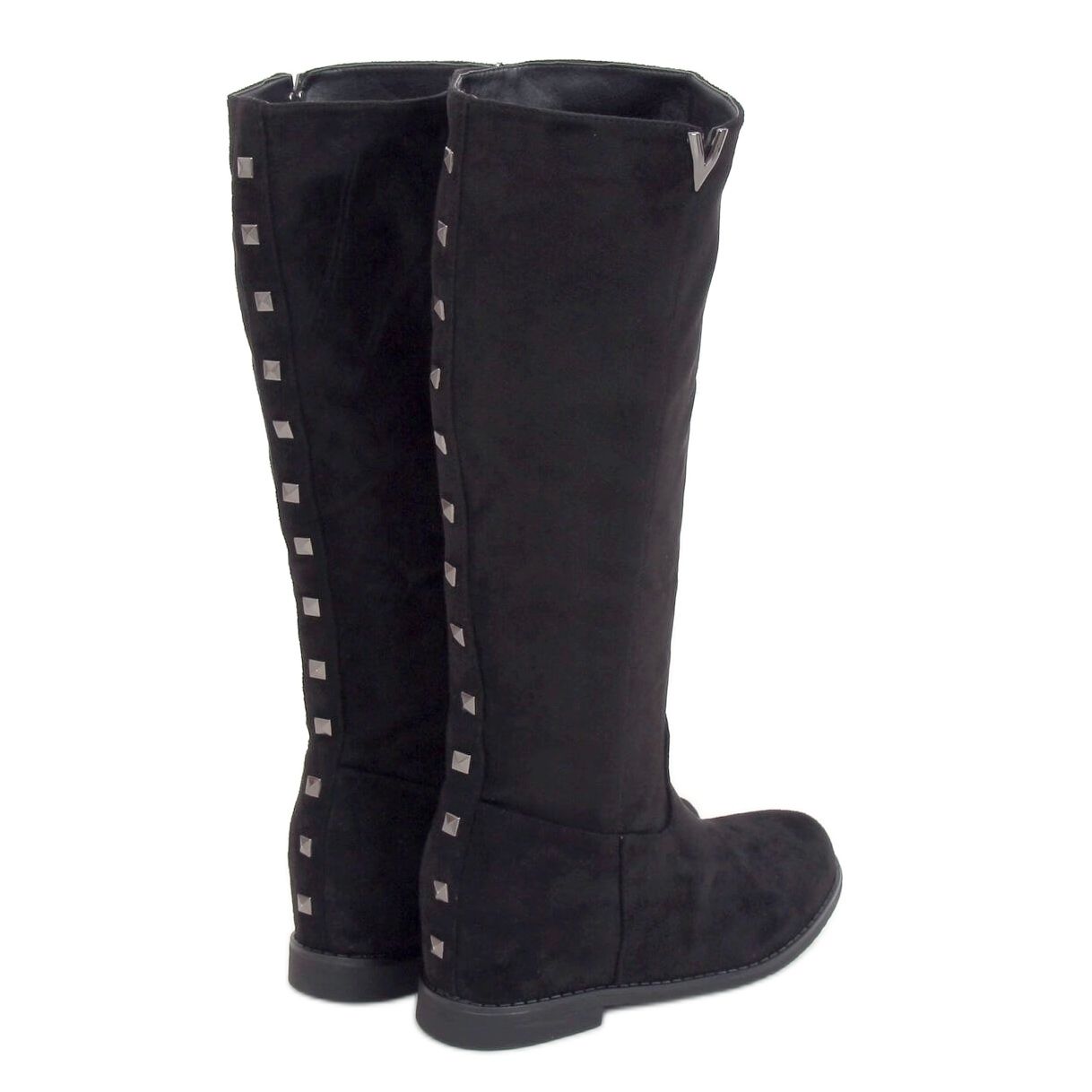 Découvrez les bottes compensées noires uniques ST-11P Black, qui se distinguent non seulement par leur design tendance, mais aussi par leur confort extraordinaire. Les compensées de 6 cm de hauteur ajoutent de l'élégance et allongent optiquement les jambes, et la tige ornée de strass et d'un subtil détail en forme de « V » attire l'attention et donne du caractère aux chaussures.