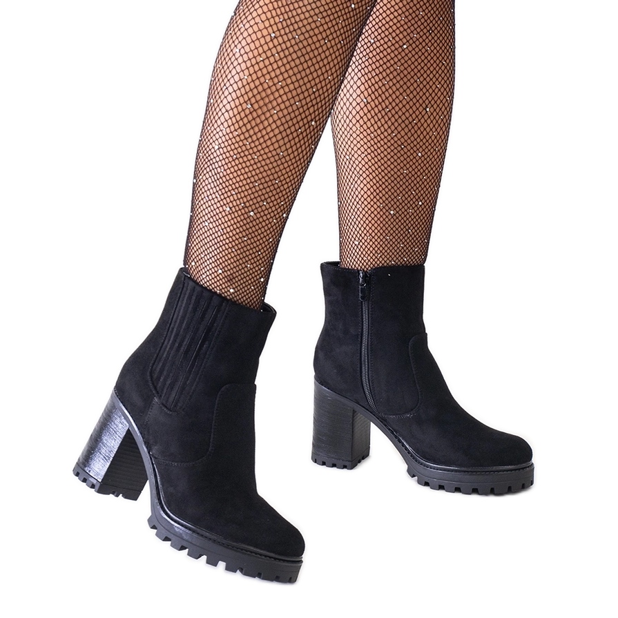 Détails: Bottines noires sur talon haut massif, éco-daim Dunyana