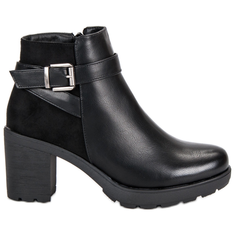 Fabriquées en cuir et en daim écologiques de haute qualité, ces bottes sont non seulement esthétiques, mais aussi pratiques : elles ne rayent pas et conservent longtemps leur aspect d'origine. L'isolation rend les pieds confortables même pendant les jours les plus froids. Les couleurs noires classiques et le motif minimaliste permettent de nombreuses interprétations stylistiques, et leur hauteur cheville et leur talon souple garantissent le confort.