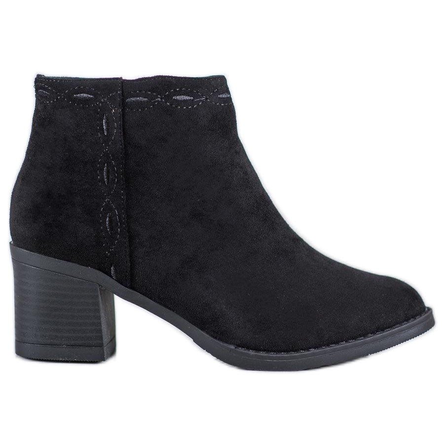 Nous vous présentons les bottines noires à talons hauts Kylie - un choix parfait pour toutes les femmes qui veulent avoir du style sans sacrifier le confort. Ces élégantes bottines de couleur noire classique sont fabriquées en daim écologique de la plus haute qualité, ce qui les rend non seulement à la mode, mais également respectueuses de l'environnement.