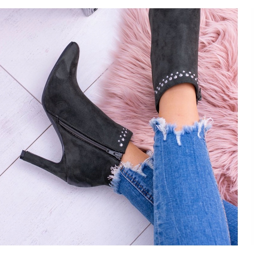 Ces bottes uniques se distinguent par une coupe classique qui s'adapte parfaitement aux dernières tendances. Équipés d'une fermeture éclair latérale pratique, ils les rendent faciles à mettre et à enlever, ce qui en fait un choix idéal pour un usage quotidien et des occasions spéciales. La décoration sous forme de rivets argentés autour de la cheville leur donne de l'expressivité, transformant la coupe classique en un élément original de garde-robe.