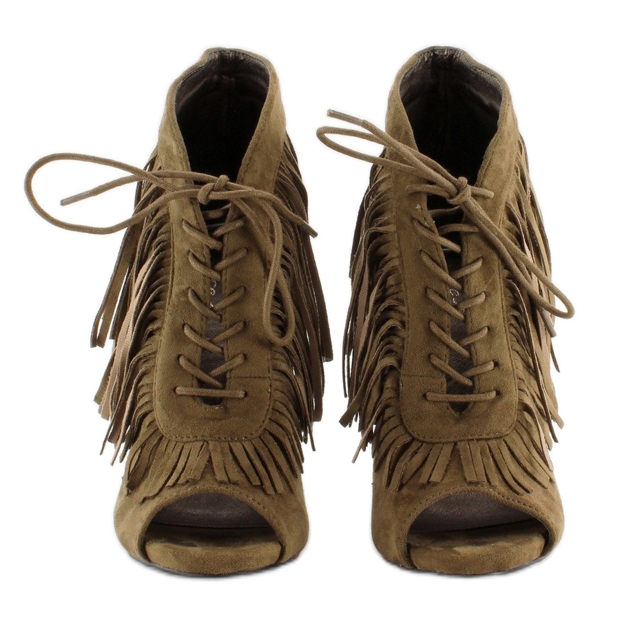 Détails: Bottines ouvertes à lacets style bohème 11015 Vert