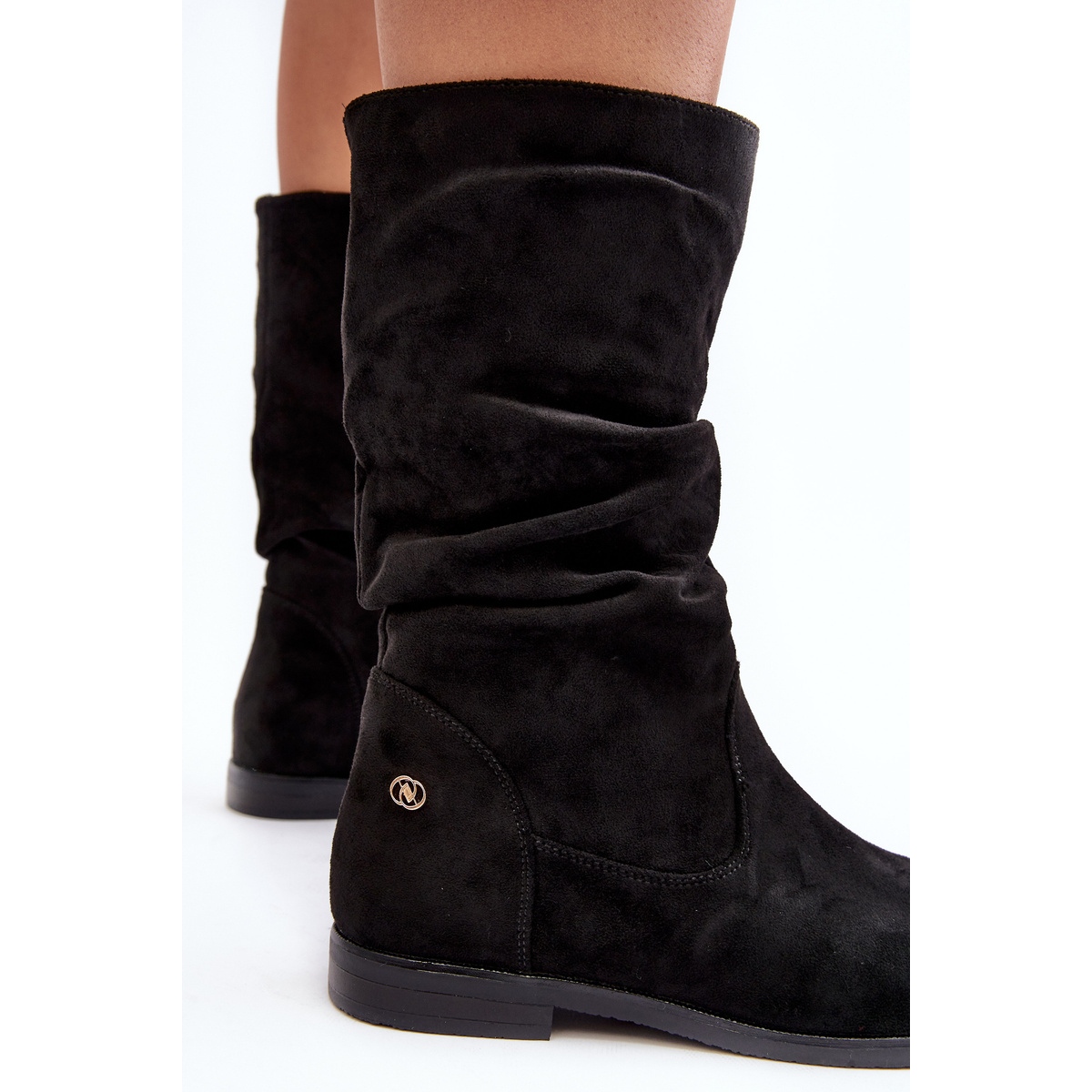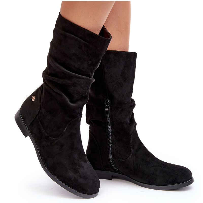 - Modèle: Bottes pour femmes sur un talon plat avec une botte froncée