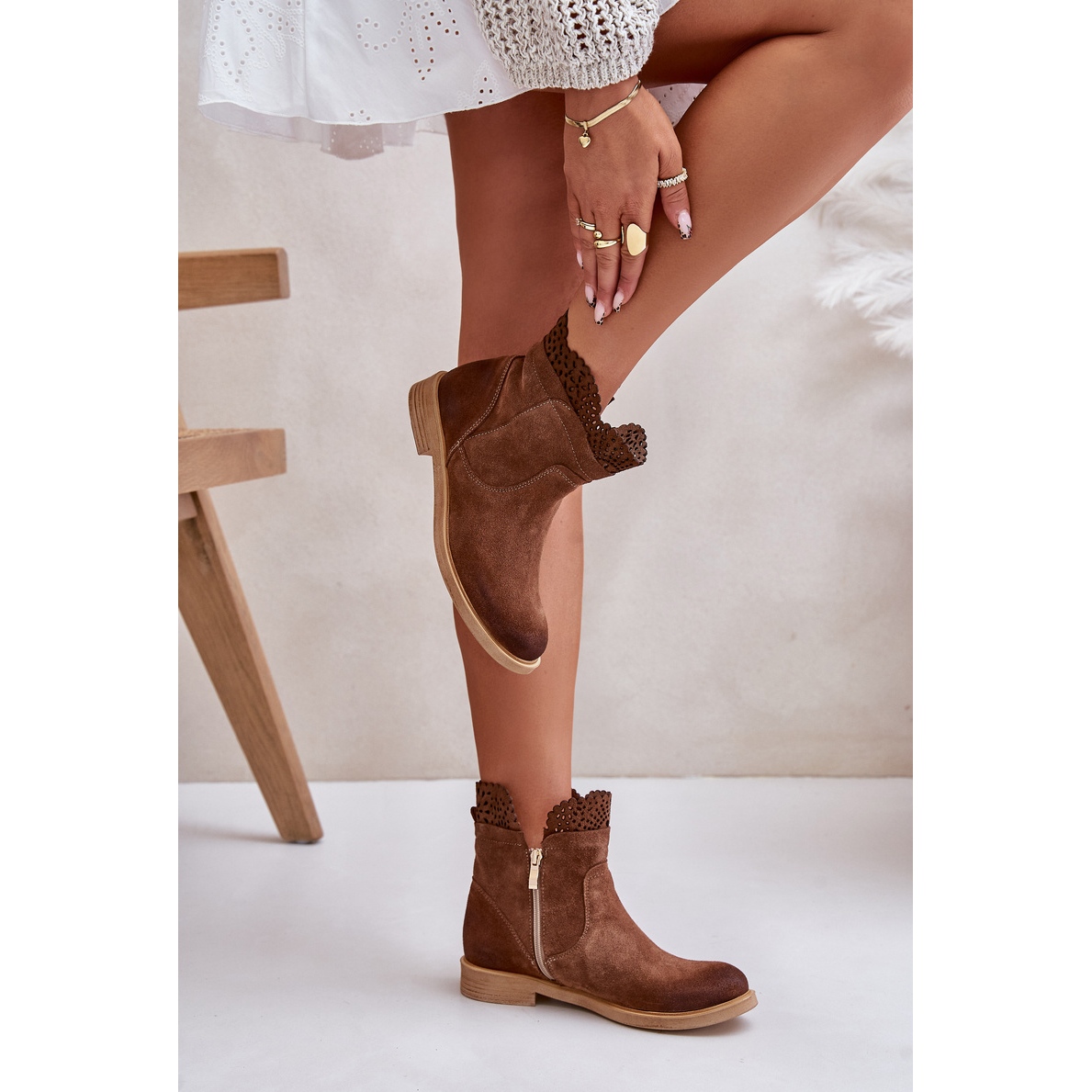 Détails: Bottines Plates Basses Femme Daim Lewski 3624 Marron brun