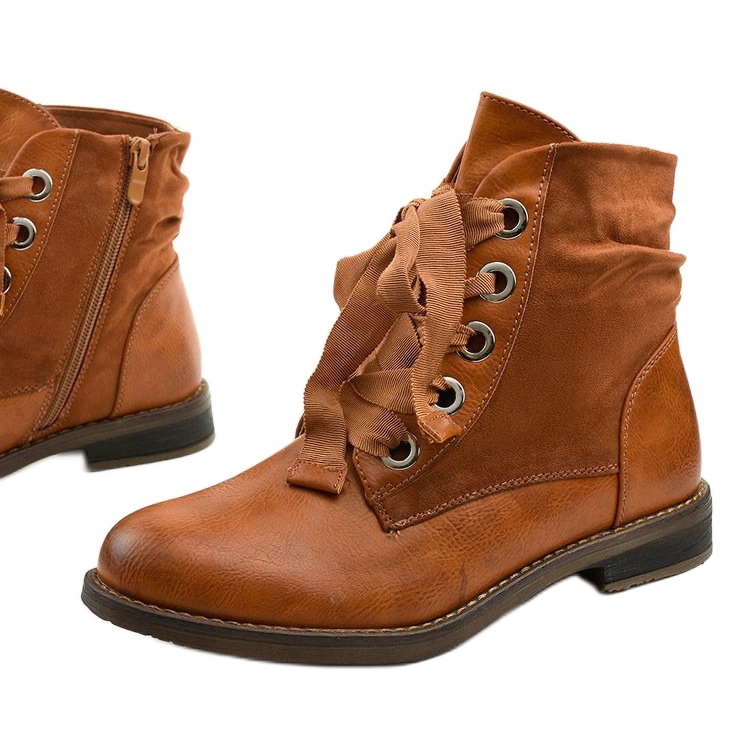 Les couleurs uniques dans les tons de marron et de jaune, enrichies d'un nœud, leur confèrent un caractère unique, ce qui en fait un accent distinctif de tout style. Dotées d'un talon plat de 3 cm de haut et 18 cm de long, ces bottines sont suffisamment hautes au dessus de la cheville, ce qui ajoute de l'élégance, tout en assurant stabilité et confort lors de la marche.