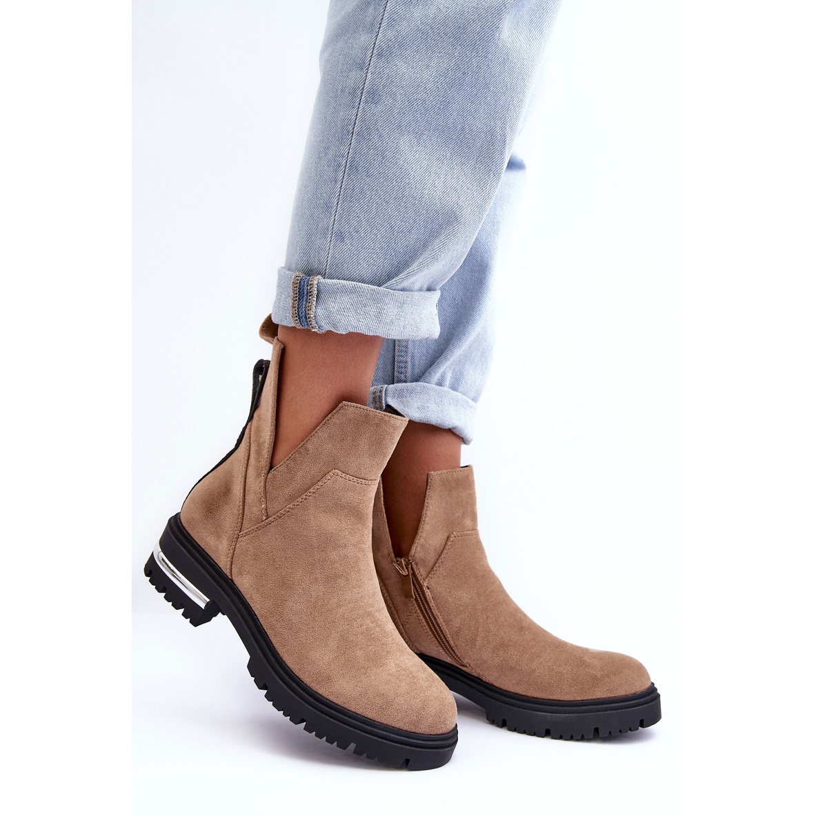 Découvrez l'élégance et le confort sous chaque goutte de pluie avec les bottines plates beiges. Bottines plates en daim avec découpes de PS1. Ces bottines extraordinaires pour femmes, fabriquées en éco-daim de haute qualité, sont le choix parfait pour la saison automne/hiver. Leur design minimaliste est complété par des découpes sensuelles et un élément miroir au talon, qui leur confèrent un caractère moderne.