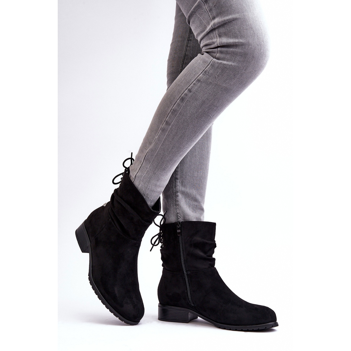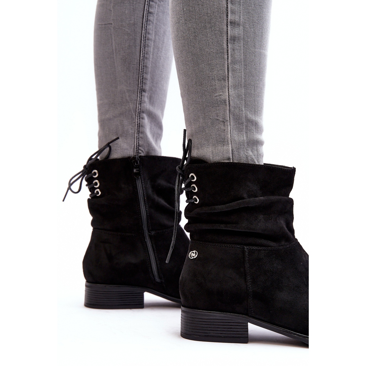 Détails: PE1 Bottines Plates En Daim Pour Femme Noir Keresa le noir