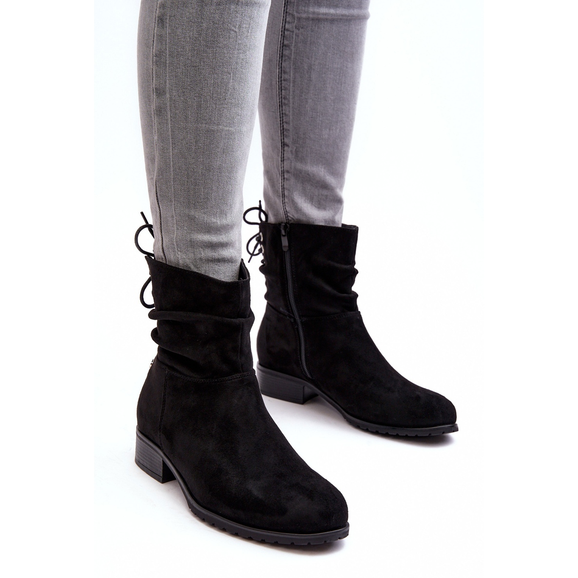 Le produit, les bottes à talons plats en daim pour femmes PE1 de couleur noire, fabriqués par PE1, sont des vêtements pour femmes, parfaits pour la période d'automne et d'hiver. Ils sont de couleur noire universelle, ce qui en fait un complément parfait à de nombreux styles. Fabriquées en éco-daim, ces chaussures sont à la fois élégantes et respectueuses de l'environnement.