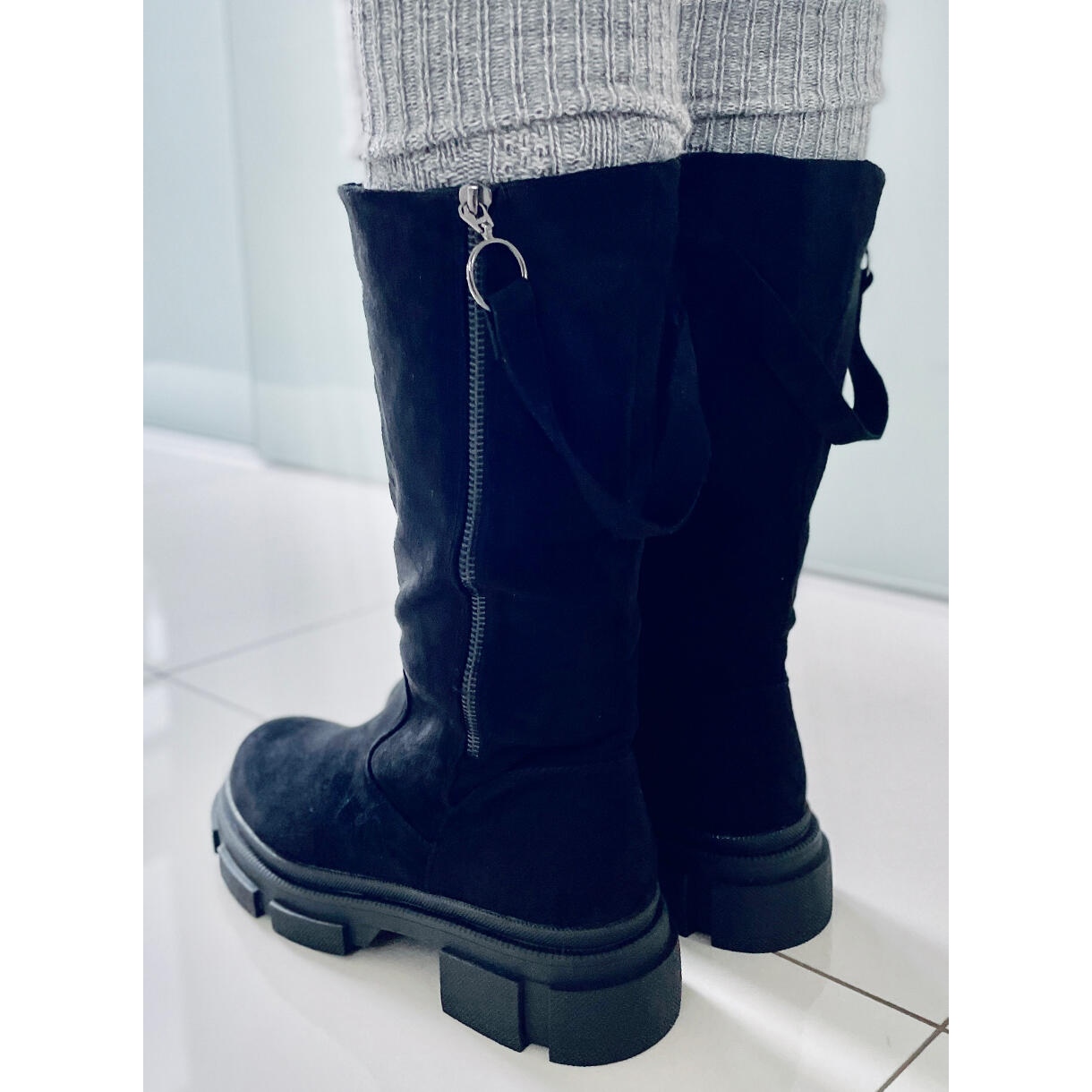 Ces bottes ont une semelle plate, ce qui en fait un choix idéal pour un usage quotidien. Grâce à leur couleur noire discrète et leur motif lisse, vous pouvez facilement les assortir à différents styles, du décontracté au légèrement plus élégant.