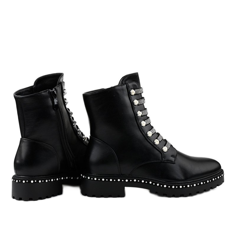 Les bottines A-537 se caractérisent par un bout rond classique et un talon plat, qui assurent un confort de port tout au long de la journée. La hauteur des chaussures dépassant la cheville leur donne du caractère, et des éléments supplémentaires sous forme de zircons et de strass les distinguent des autres modèles.