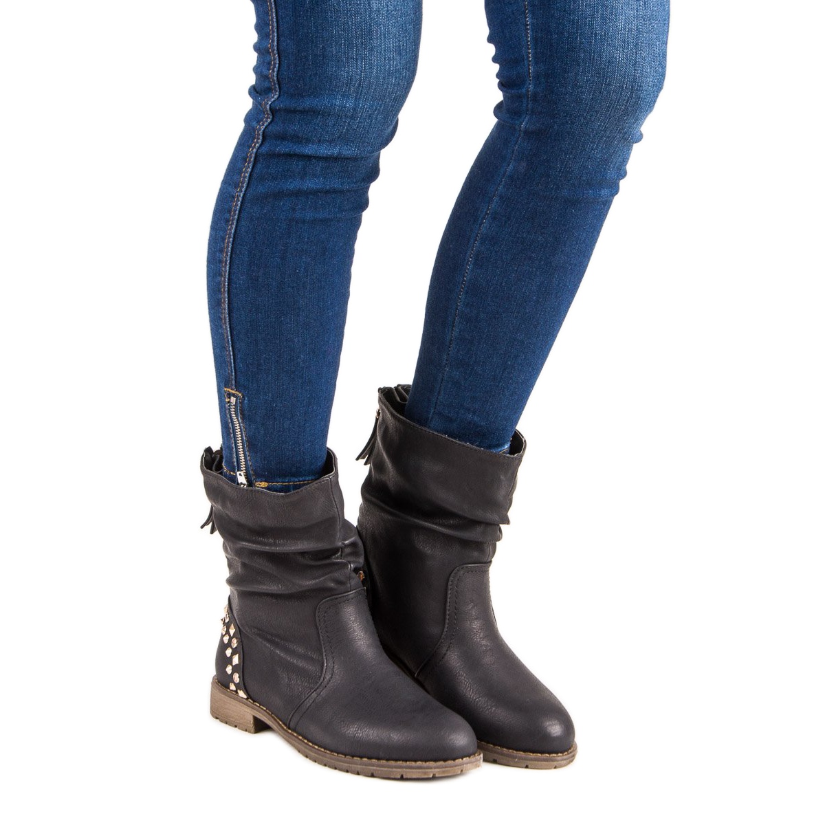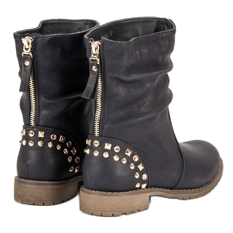 Découvrez les bottines Kayla élégantes et confortables qui allient parfaitement mode et fonctionnalité. Ces bottes plates rock se caractérisent par une couleur noire classique, ce qui les rend extrêmement universelles et s'adapte facilement à différents styles, aussi bien avec des pantalons que des robes.