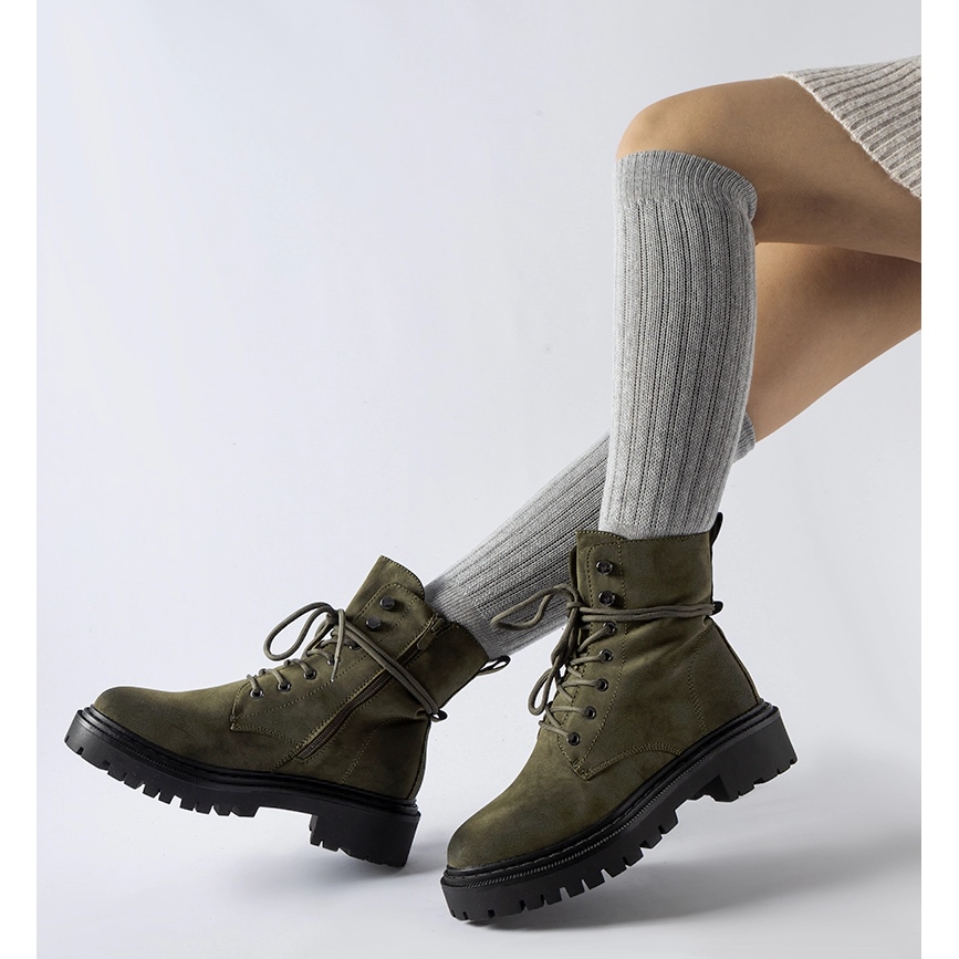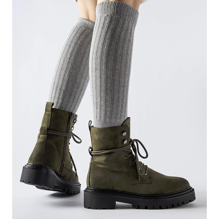 Les bottes de randonnée élégantes et femmes à DK.Green sont une combinaison parfaite de conception urbaine et de solutions pratiques pour l'automne-hiver. Fabriqué en cuir en daim écologique de haute qualité, isolé et en atteignant la cheville, assurez-vous un confort thermique et un peu de pied. Le protecteur de brattler caractéristique sur une semelle en caoutchouc garantit une bonne adhérence sur les surfaces glissantes, et un talon plat et un nez rond mettent les chaussures confortables pour une usure quotidienne.