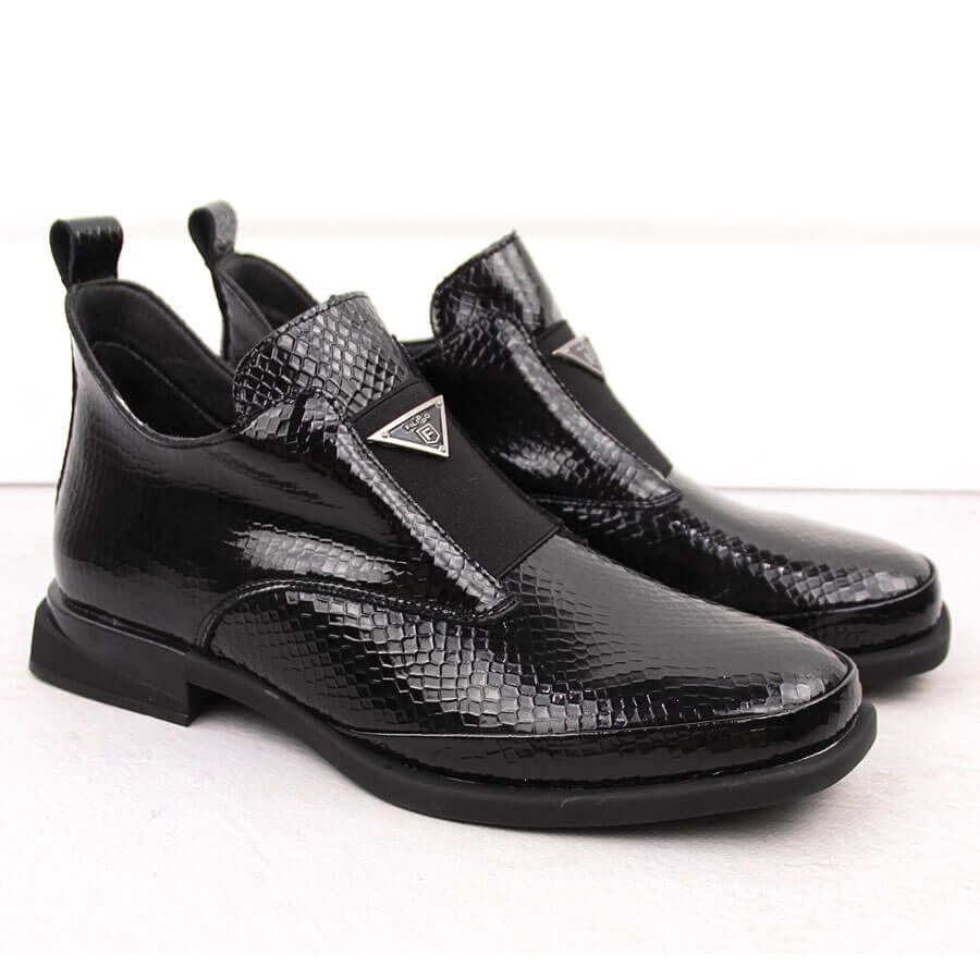 Bottines pour femme en cuir verni avec décoration crocodile, noir Filippo DBT6425