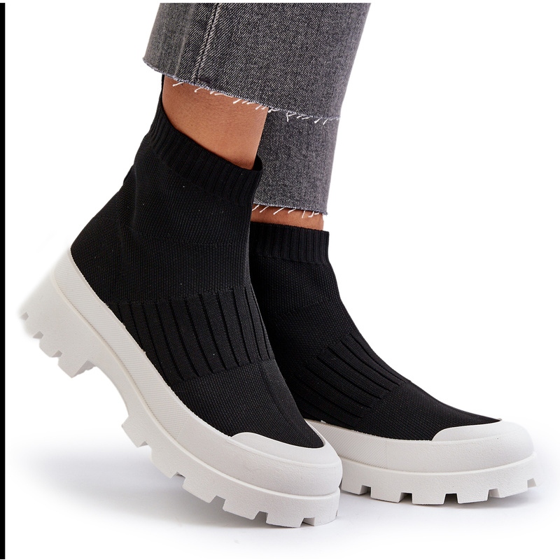 Détails: Bottines Pour Femmes Avec Chaussette Supérieure Slip-On Noir Fiename le noir