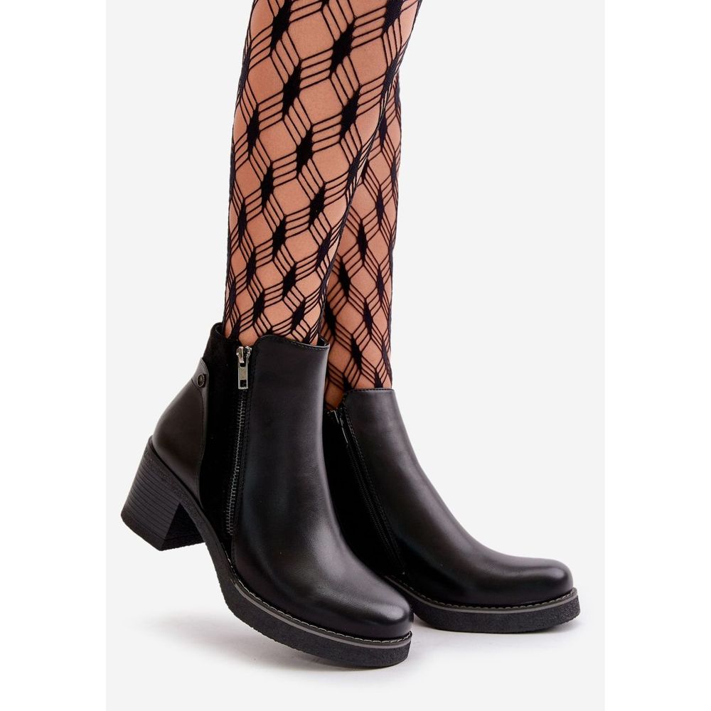 Nous présentons des bottes en cuir pour femmes sur le Revianna Post, qui sont la combinaison parfaite de confort et de style. Ces élégants bottes noires attireront certainement l'attention grâce à leur conception intemporelle. Situé sur un talon stable sous la forme d'un poteau de 6,5 cm de haut, ils garantissent la commodité de porter toute la journée, même pendant les longues promenades.