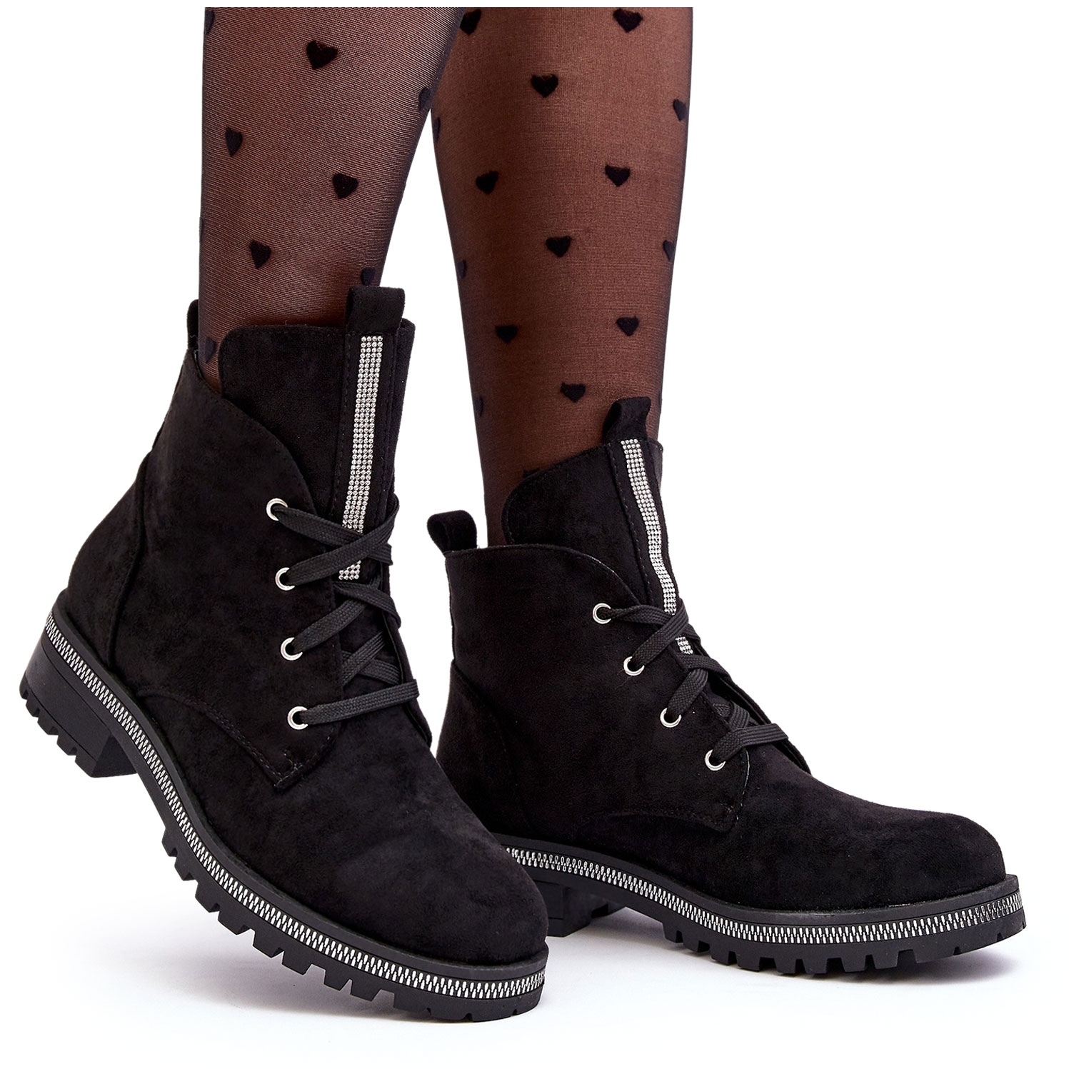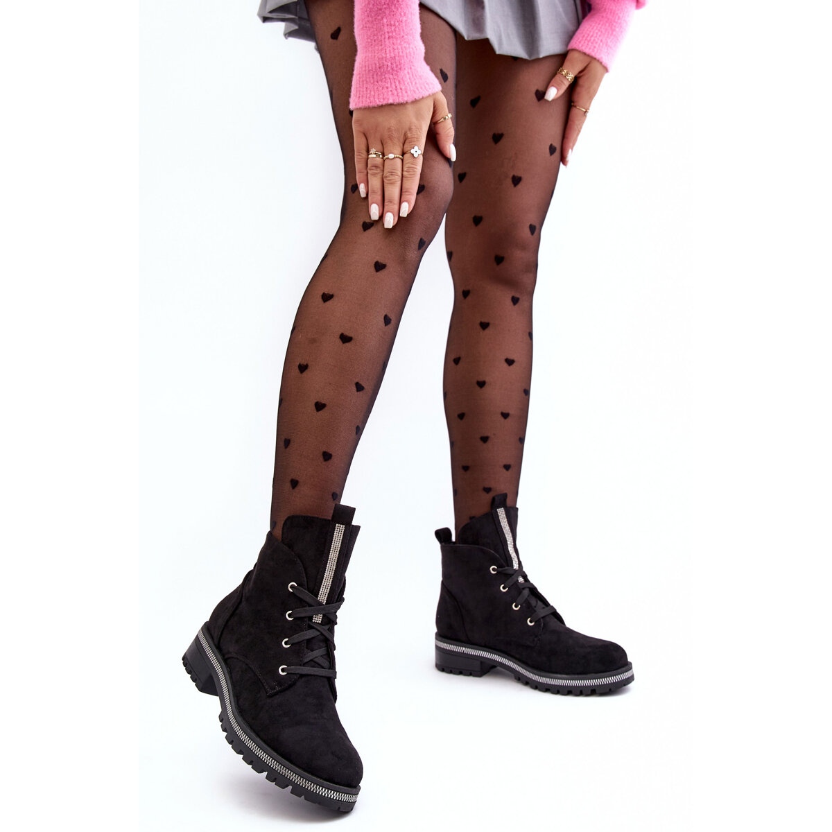 L'esthétique des bottines est soulignée par de petits strass brillants placés sur la languette. La couleur de base est le noir universel et la couleur supplémentaire est l'argent. Les bottes n'ont pas de motif dominant, ce qui en fait un complément parfait à de nombreux styles.