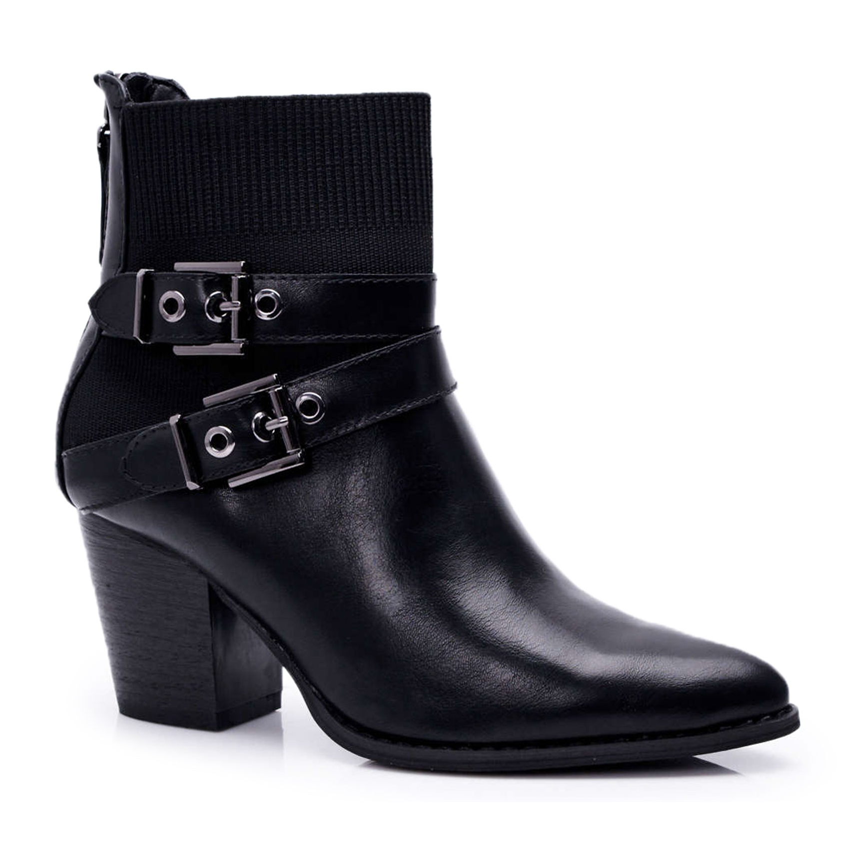 Détails: FRJEIN Bottines Pour Femmes Sur Un Talon Fermoirs En Fello Noir