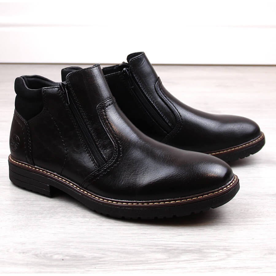 Détails: Bottines pour hommes en cuir, doublées de laine, noires Rieker 33151-00 le noir