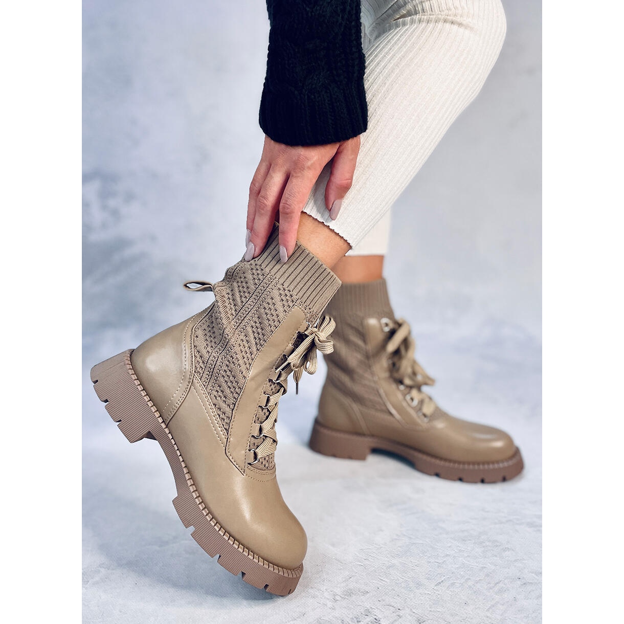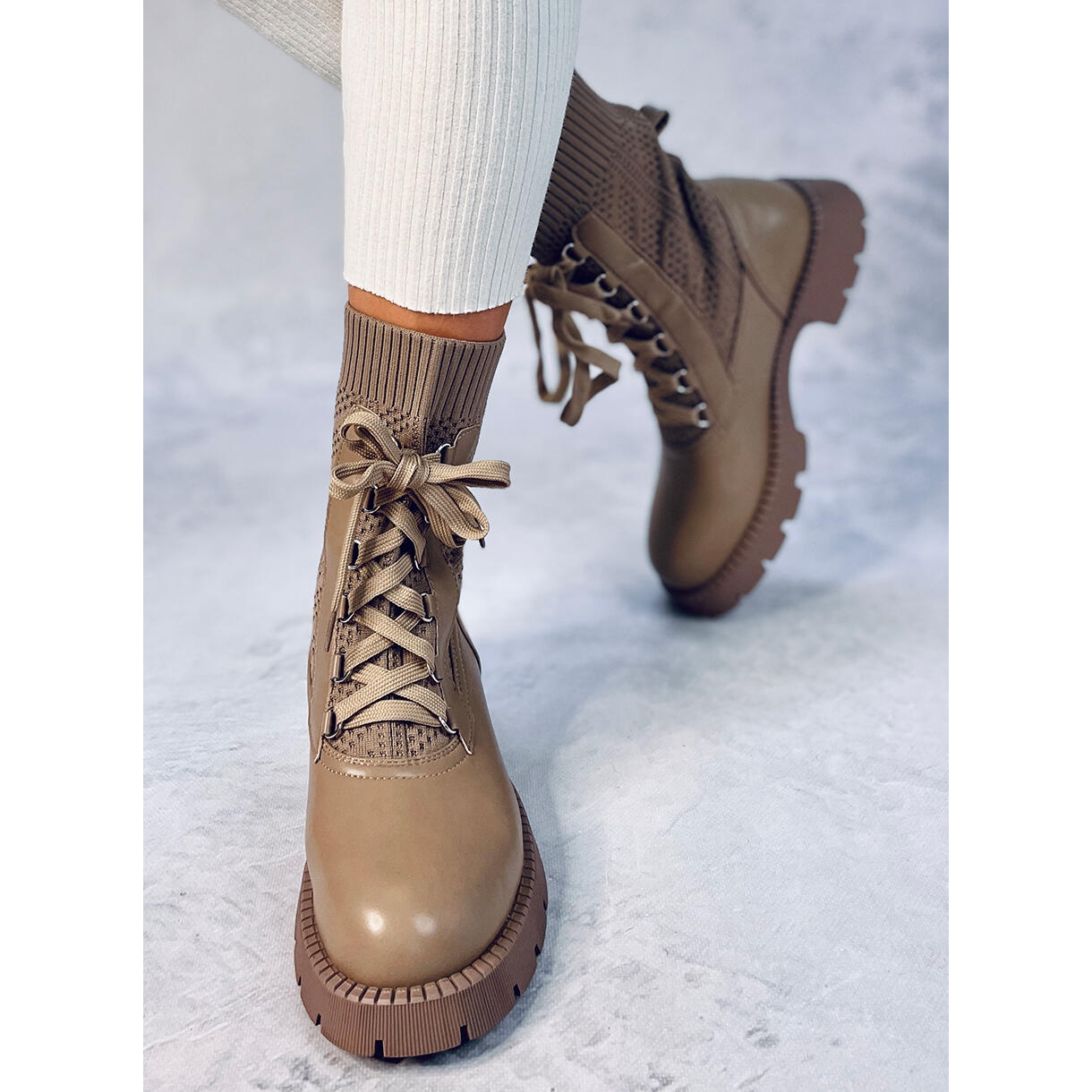 Bottes avec un pull supérieur supérieur kaki - confort féminin tous les jours