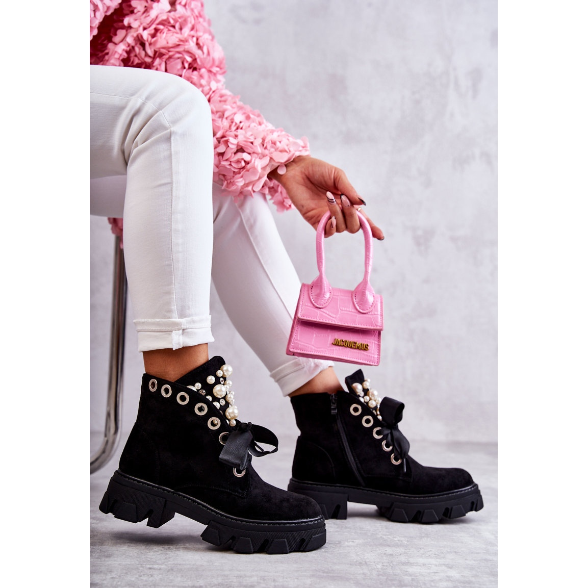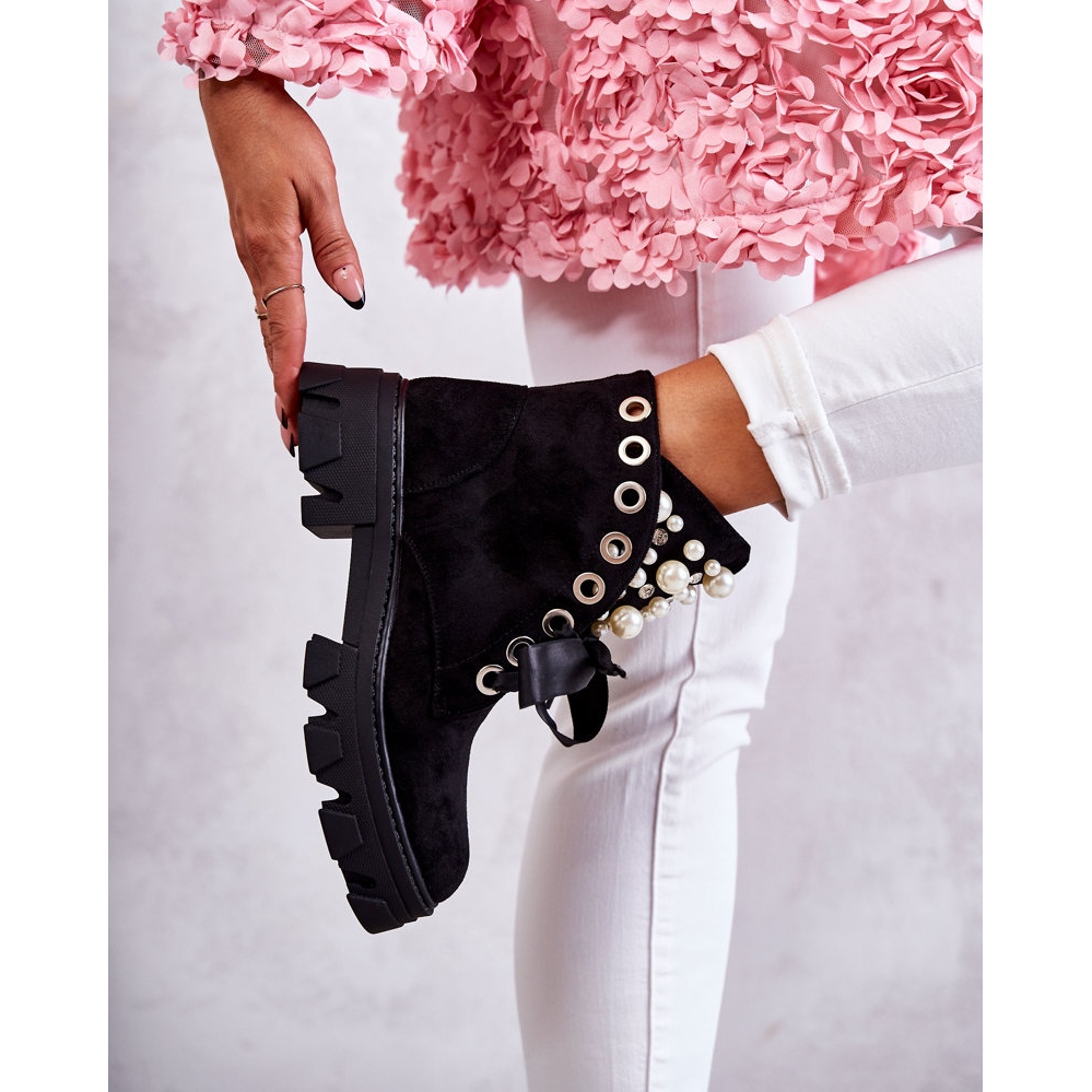 Détails: Bottines Roco Suede Warm Noires Avec Perles le noir