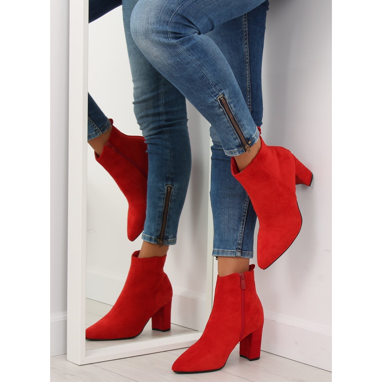 Redécouvrez les classiques avec des bottines rouges à talon stable ! Parfaites pour les femmes qui souhaitent allier élégance et confort, ces bottines sont un incontournable de toute garde-robe. Fabriquées en daim écologique de haute qualité, elles sont extrêmement élégantes et leur talon bloc de 8 cm de haut allonge joliment les jambes.