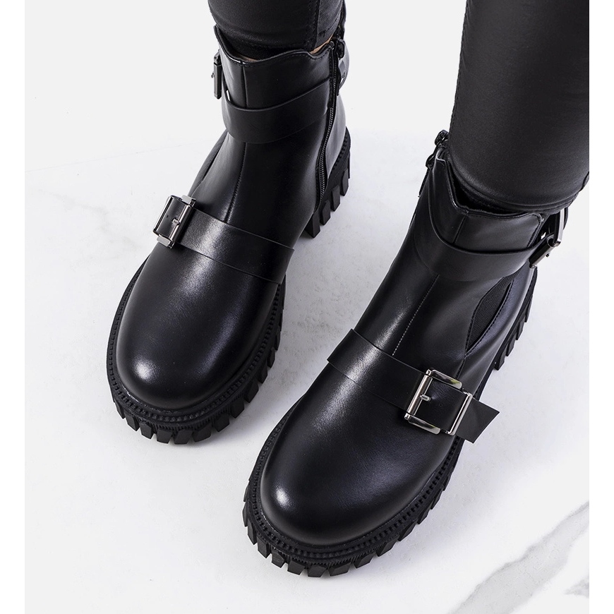 Les bottes samora élégantes et universelles sont un incontournable dans une garde-robe d'automne-hiver. Fabriqués en cuir écologique de haute qualité dans une couleur noire classique, ils compléteront parfaitement les stylisations quotidiennes et plus de sortie. La semelle et la plate-forme caractéristiques, High Trapper (hauteur du talon / plates-formes de 4,5 cm) donnent aux chaussures un look massif à la mode et en même temps assurer la stabilité lors de la marche.