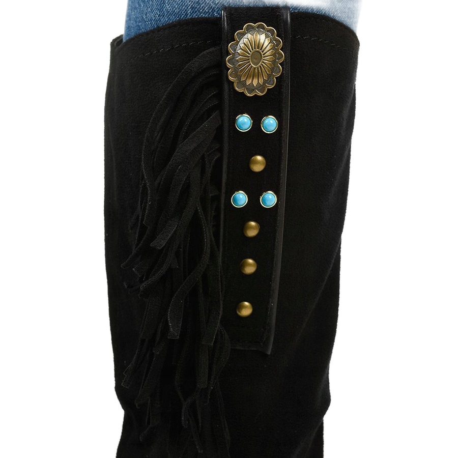 Les bottes se distinguent par des décorations sous forme de franges et de strass, qui leur confèrent un caractère unique et complètent parfaitement différents styles. Grâce au talon bloc confortable de 5 cm de haut, vous pourrez profiter d'un confort pendant de nombreuses heures.