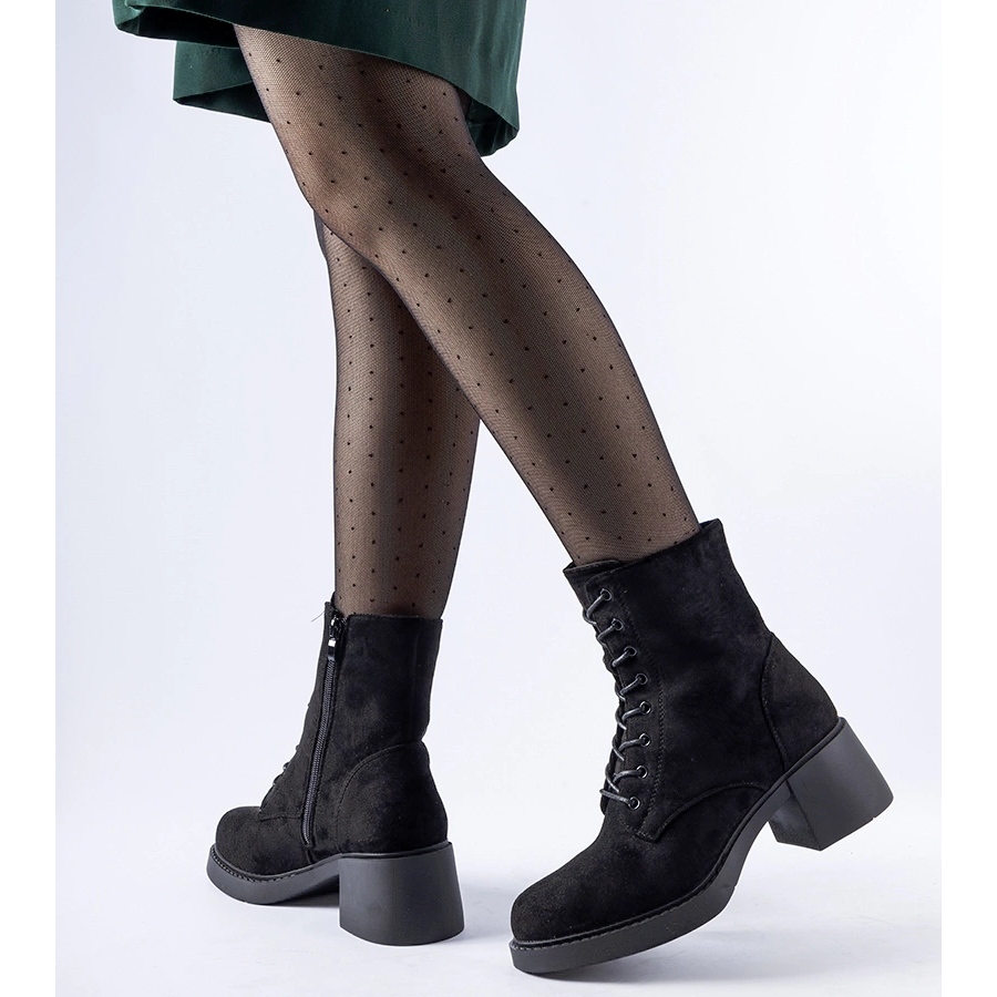 Élégant, intemporel et pratique - ces bottes noires du sud sont une proposition qui fonctionnera dans la garde-robe de chaque femme. Fabriqué en cuir en daim écologique, avec un intérieur isolé, ils offrent du confort et de la chaleur tout au long de l'automne et de l'hiver. Un poteau stable d'une hauteur de 5,5 cm ajoute une élégance subtile, et la forme du nez est ronde - pratique dans le quotidien.
