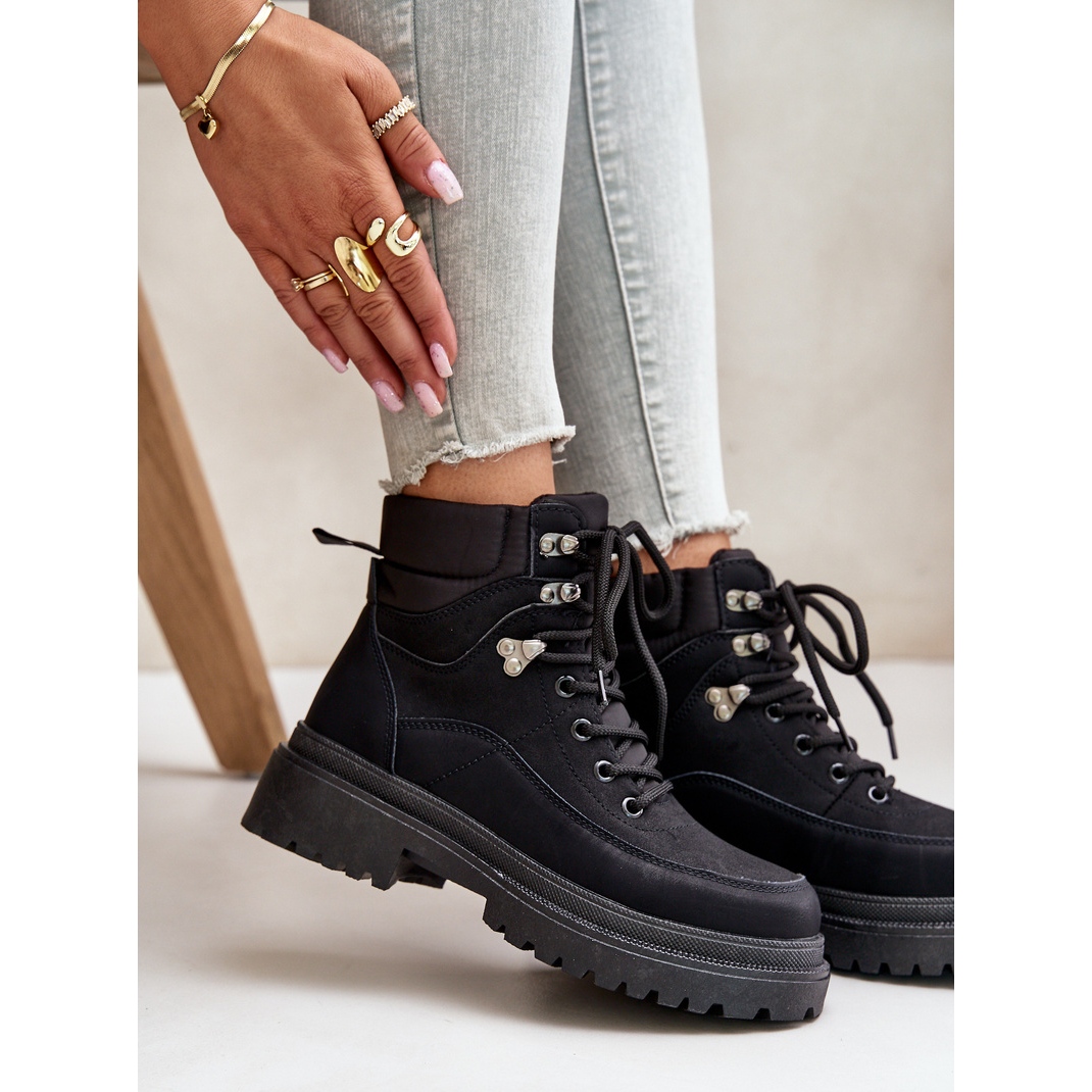 Les bottes Trapper pour femmes Laced Black sont le choix parfait pour les femmes qui apprécient le confort et le style. Fabriquées en éco-cuir de haute qualité, ces bottines sont non seulement esthétiques, mais aussi respectueuses de l'environnement. Posées sur une plateforme solide avec un talon plat, elles assurent le confort lors des activités quotidiennes, comme les promenades ou les week-ends.