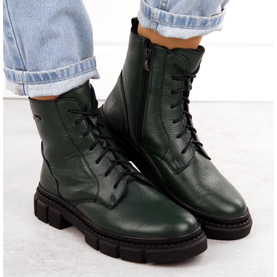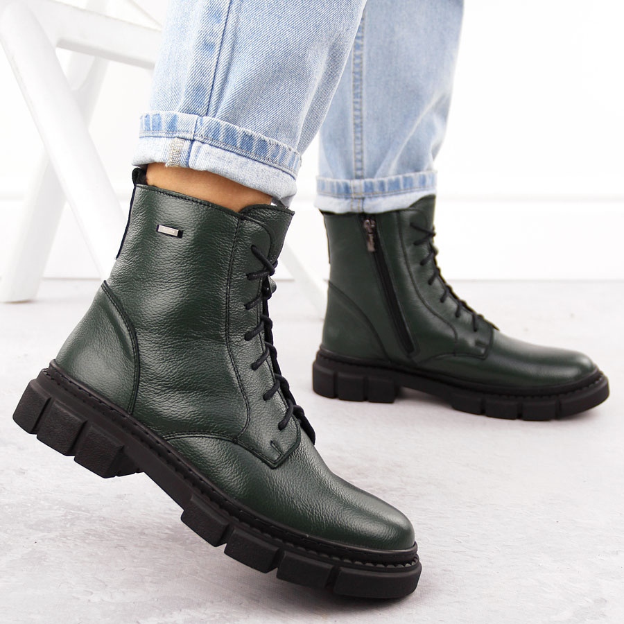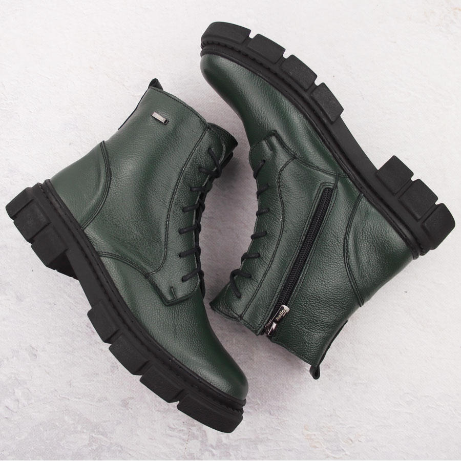 Détails: Bottines trappeurs isolées en cuir pour femme, vert Helios 549