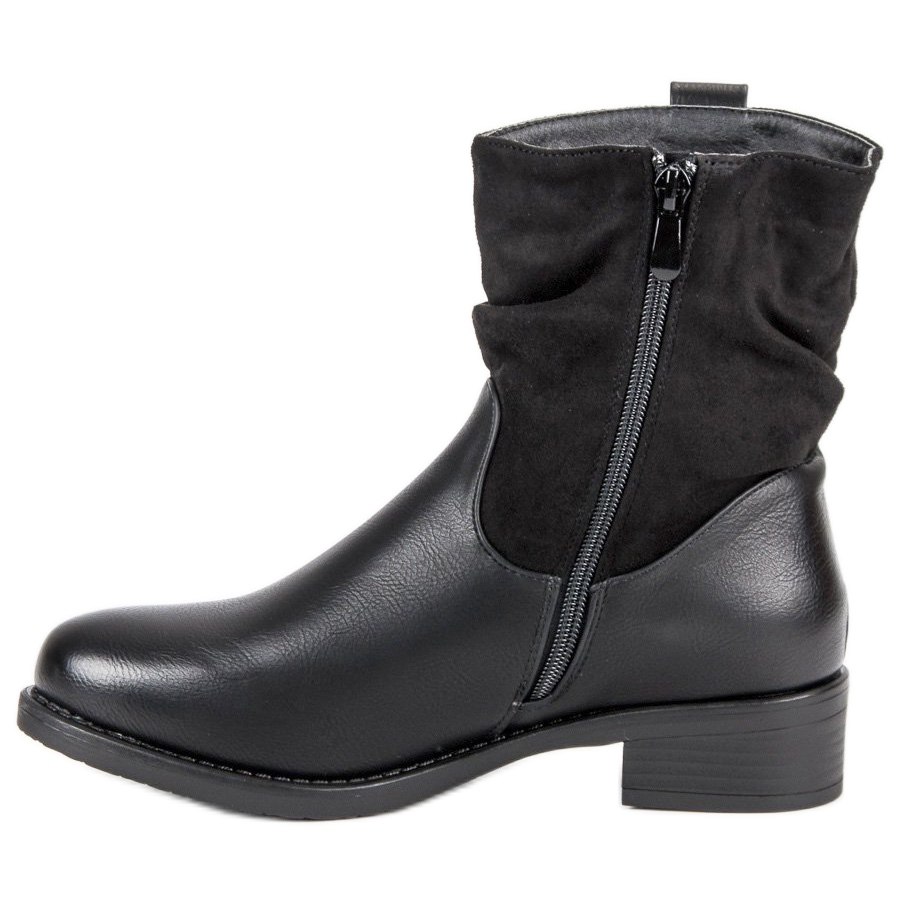 Découvrez des bottes de travail noires uniques qui deviendront un élément irremplaçable de la garde-robe de chaque femme. Ces chaussures élégantes sont la combinaison parfaite du style classique et des accents rock à la mode de nos jours. Fabriquées avec une attention exceptionnelle aux détails, elles se caractérisent par une combinaison intéressante de matériaux - une tige en daim écologique dans une autre nuance de noir entrelacée avec un élégant cuir écologique, ce qui leur confère un caractère unique.