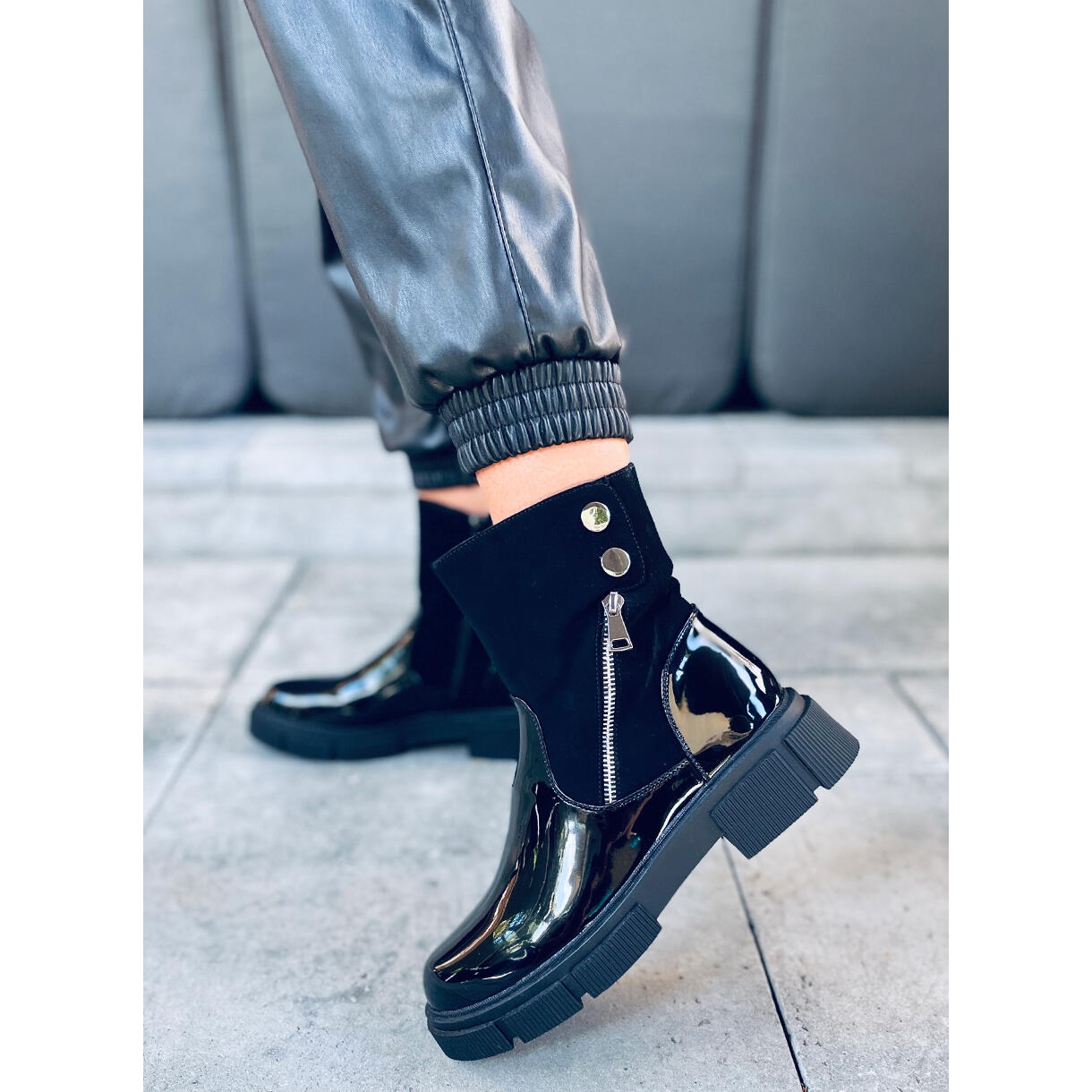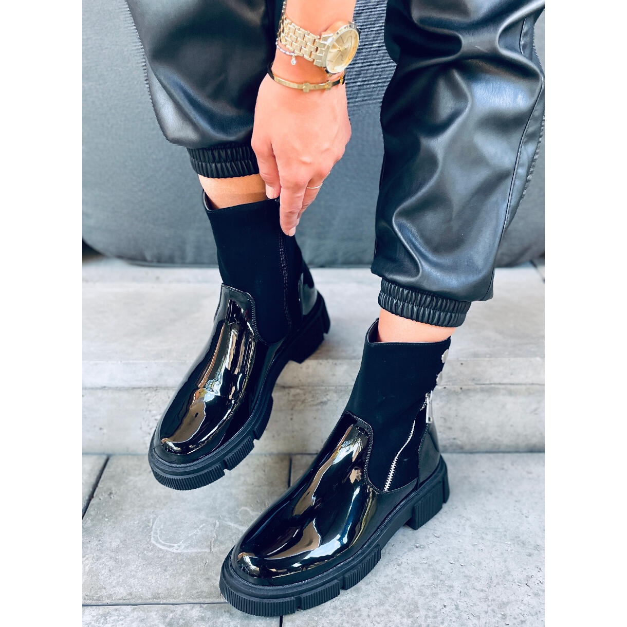Les bottines vernies Unni Black sont le choix parfait pour toutes les femmes qui souhaitent allier mode et confort au quotidien. Ces élégantes bottines noires à semelle haute se distinguent par une couleur classique qui s'intègre parfaitement dans n'importe quelle garde-robe. Leur design moderne avec une tige haute et une combinaison accrocheuse d'éco-verni et de cuir mat les rend non seulement élégants, mais aussi accrocheurs.